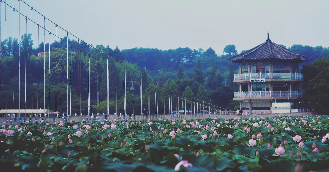 연꽃이 피고지는 가운데당신도 피었다가 지렵니까