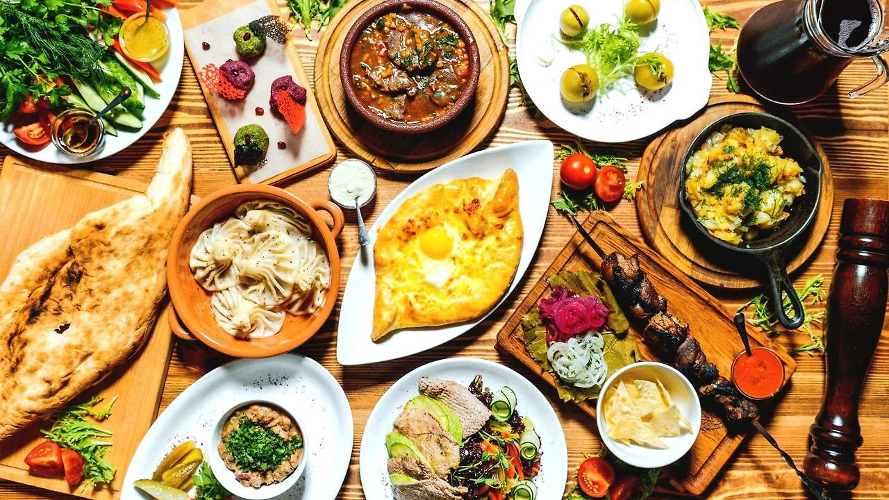 조지아는 성경에서 말하는 젖과 꿀이 흐르는 땅이 바로 여기다 할 정도로 농축산물이 잘 자라는 곳이다. 산에는 희귀 작물과 허브가, 들에는 포도를 포함한 다양한 과수가 자라고 있어 친환경 음식을 준비하기에 적합하다. 이러한 배경 속에 여러 문명들이 교차하면서 다양한 음식문화가 자리 잡았다.
