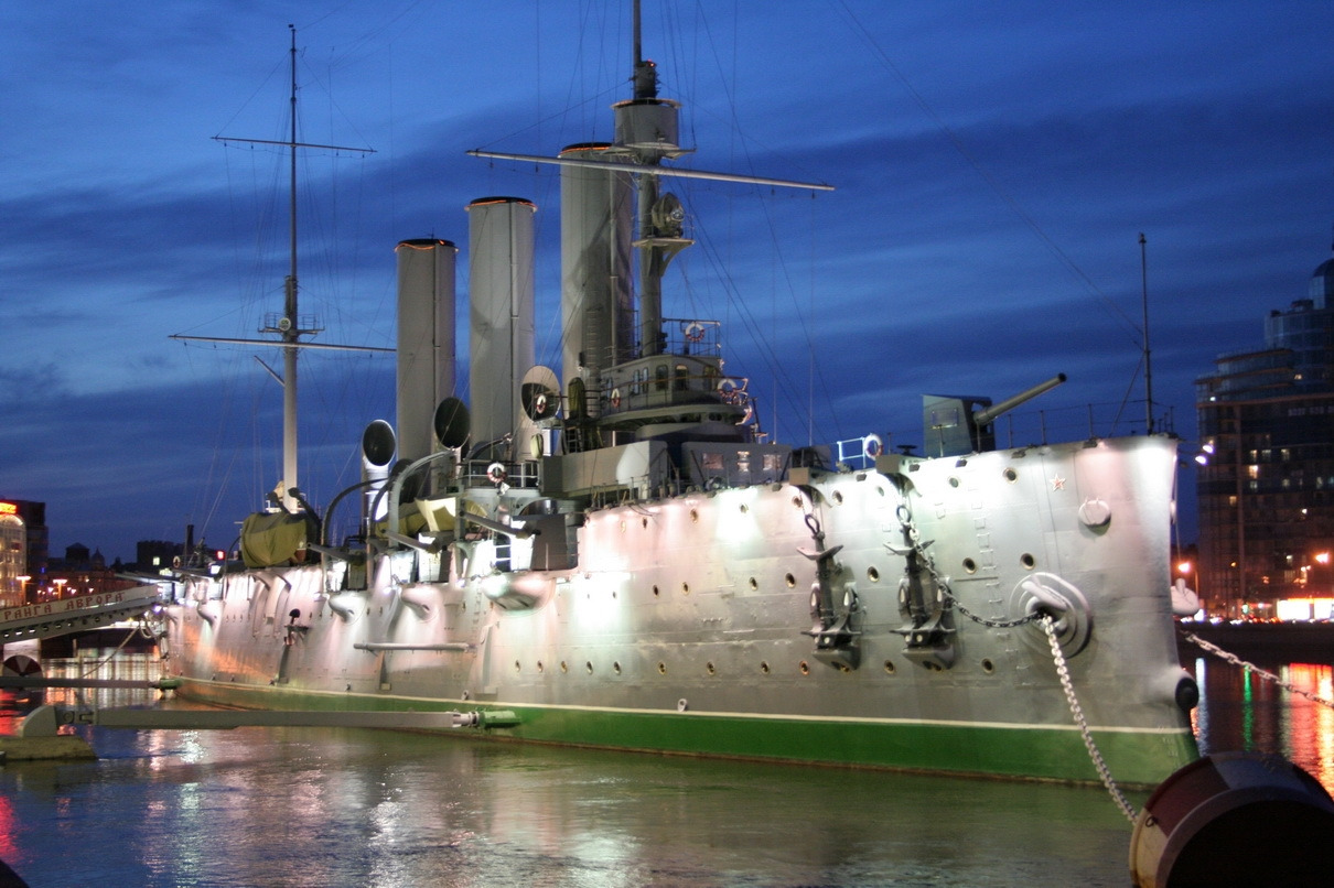 이후 1917년 10월 25일에는 트로쯔키의 명령을 따라서 겨울궁전에서 저항하던 케렌스키 임시정부 요인들을 향해 오로라 순양함에서 위협 포격을 가하였고, 결국 볼셰비키 혁명은 성공하게 된다. 오로라 순양함은 1948년부터 지금의 이 장소에 영구히 배치되어, 현재는 해군 박물관 별관으로 사용되고 있다. 이제 트램은 이 투어의 하일라이트를 향해 이동한다.