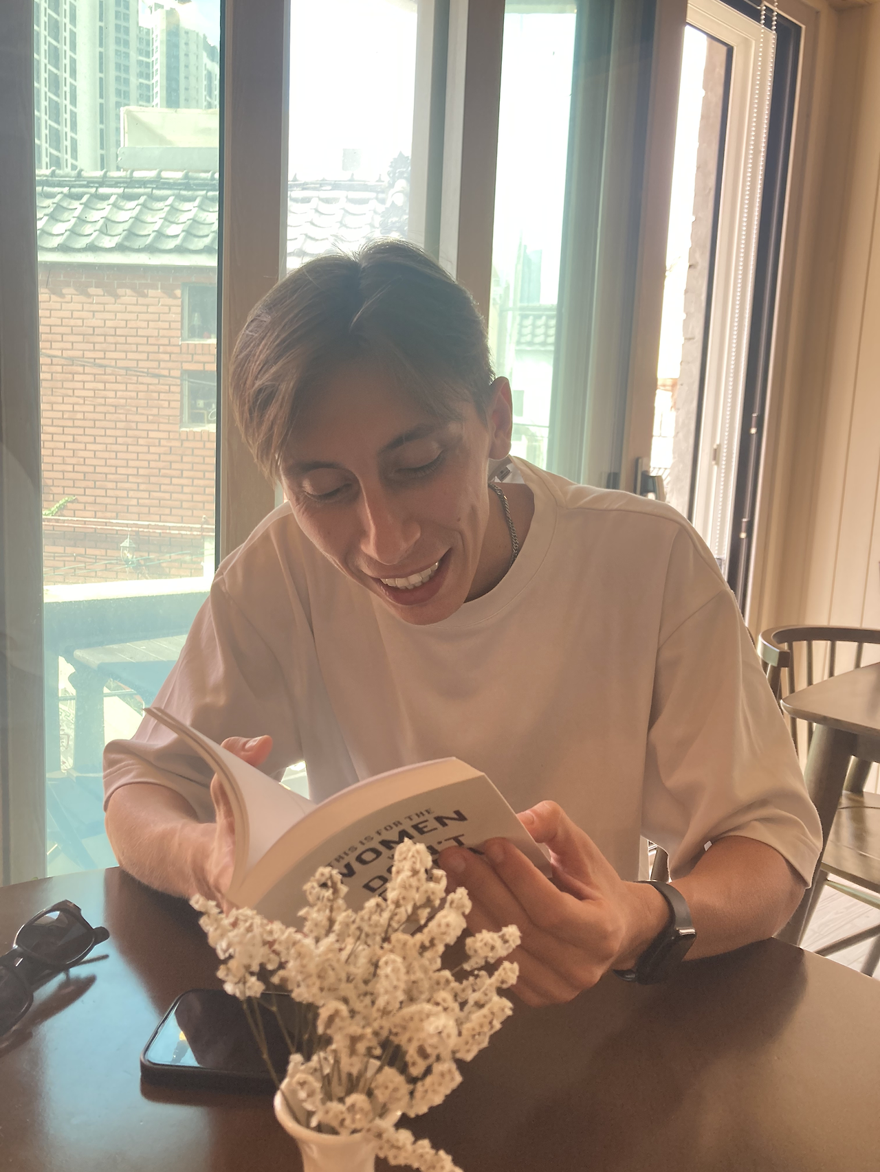 꾸준히 가게에 들렀고, 아쉬움에 발리로 떠나는 새벽비행 전날은 함께 휴무날에 만나 긴긴 대화를 또 이어가기도 했으며 우정을 다지기도 했다. 톰과는 지나간 인연이 되지 않고 그 이후에도 참 자주 안부를 주고받았고 연락을 하며 지냈는데 그로부터 일 년 뒤, 카페를 정리하기 한 달 전쯤, 나에게 말도 없이 서프라이즈(정말로 서프라이즈였다!! 이 발칙한 친구 같으니!!!!)로 조그만 책선물과 편지를 들고 영상크리에이터답게 가게가 있는 동네에 도착해서부터 우리 가게에 오는 길, 카페 문을 열고 들어와 내가 깜짝 놀라는 반응까지 핸드폰을 들고서 혼잣말을 중얼거리며 영상을 찍기도 해 날 더 놀라게 했다.