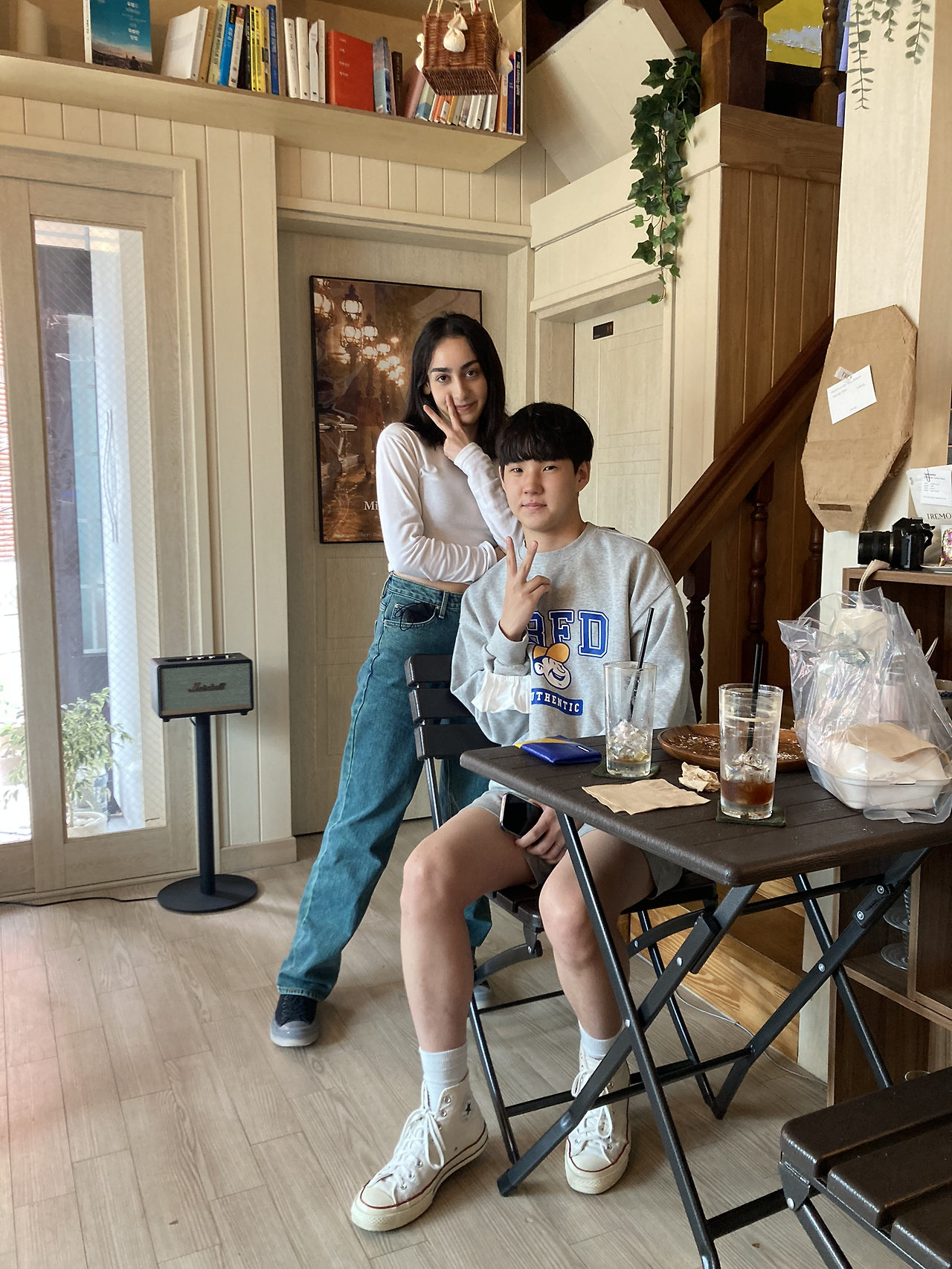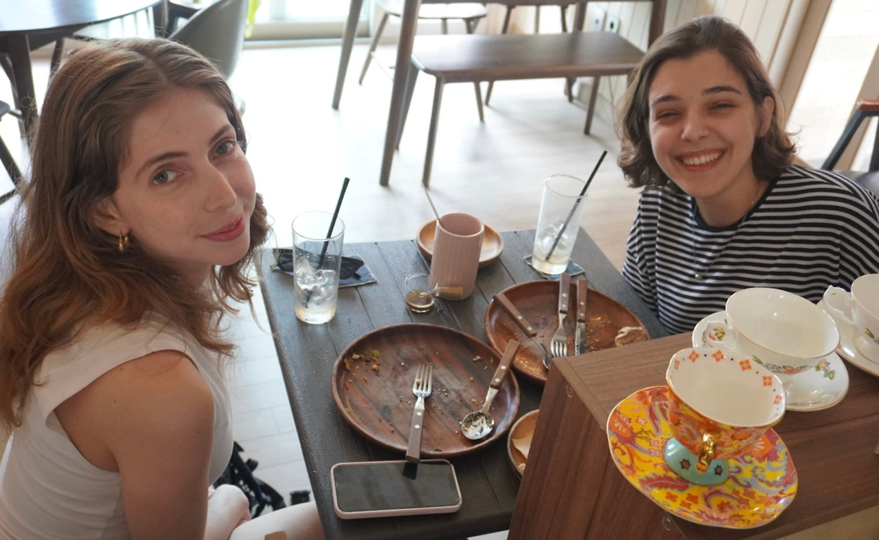“아, 네! 잠깐 한국에 들린 동안 여기저기 다니고 우연히 어제 여길 온 거였는데 크로와상 샌드위치 너무 맛있어서 둘 다 생각나서 또 왔어요. 오늘 서울로 돌아가요.”