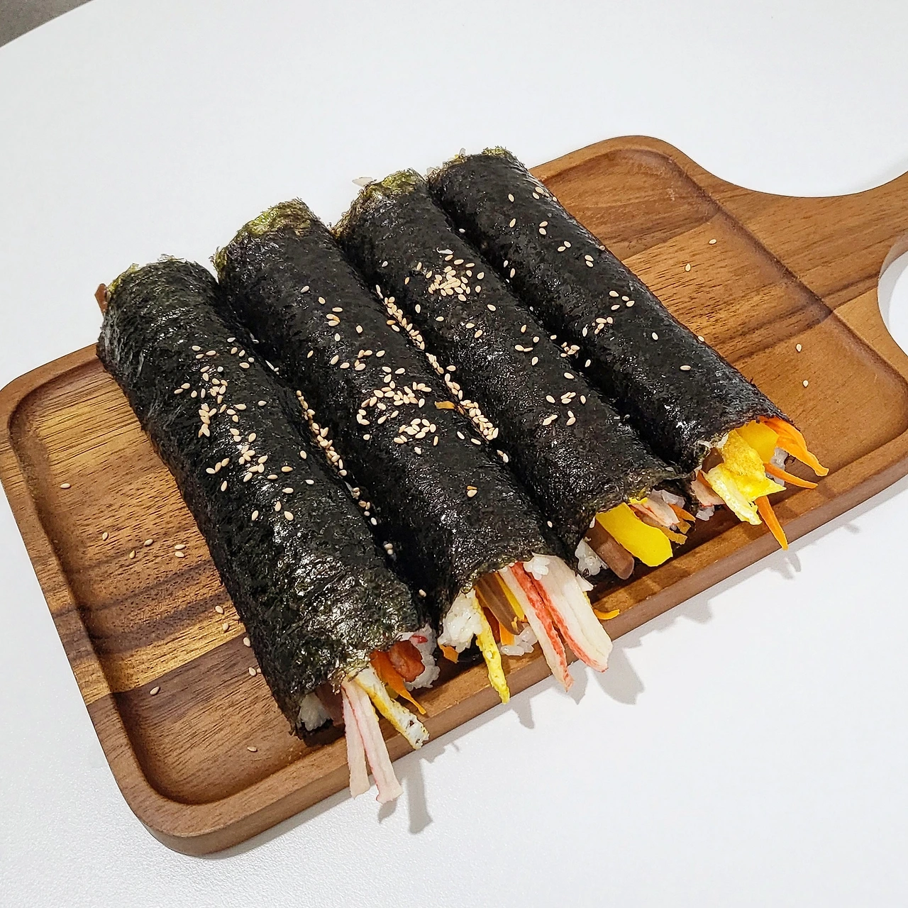 이 경험 이후로 나는 시중에 파는 김밥 가격이 얼마나 말이 안 되는지를 깨달았고, 김밥을 만들어 파는 모든 분들에게 존경심이 들기 시작했다. 조금 오버스럽긴 하지만, 주로 김밥을 담당하시는 중년 여성의 노동에 대한 평가절하라는 생각마저 들었다. 아무리 생물 횟감, 튀김 등이 들어간다고 해도 일식 김밥 후토마키가 대여섯 배 훌쩍 넘는 가격을 호가하는 것만 보아도. 멋들어진 요리 축에 끼지 못해, 그냥 저렴한 가격에 쉽게 먹을 수 있는 것이 당연해져 버린 음식. 범람하는 '김밥 지옥'이 김밥에 대한 재평가를 불러일으켜주는 것 같아 나는 요즘 내심 반갑다.
