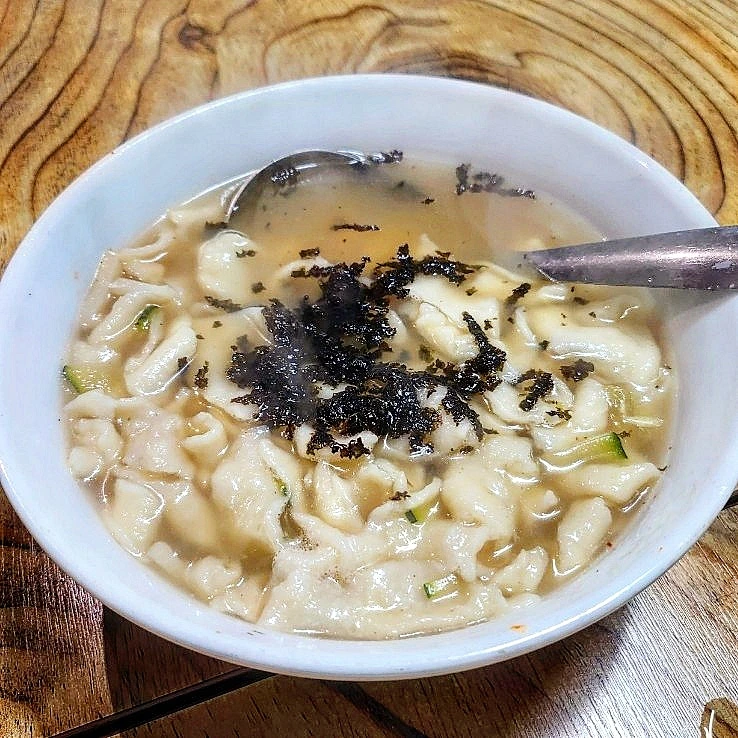 서비스로 내어주신 수제비. 얇게 뗀 그 맛이 일품이다