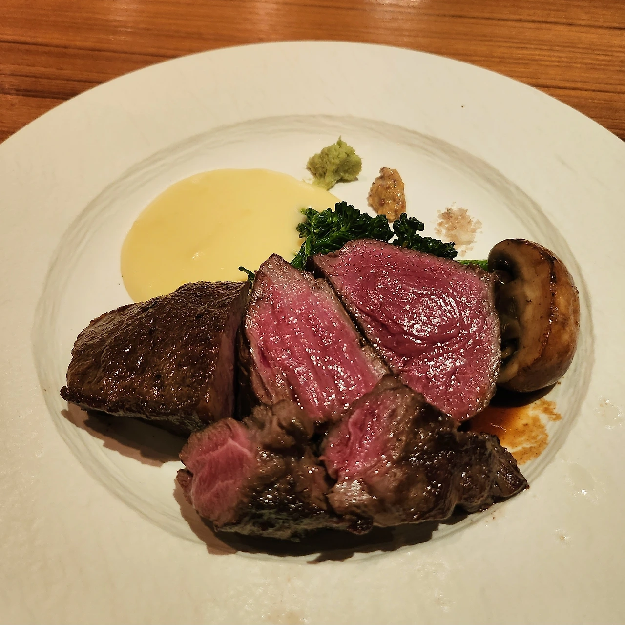 고기는 부드럽게 썰렸고, 입 안에 넣자마자, 태어나서 처음 먹어보는 응축된 풍미를 느낄 수 있었다. 치즈처럼 콤콤한 듯하면서도 지방질의 기름진 맛이 농밀하게 퍼졌다. 조직감은 생각보다 단단해지만 질기지는 않고 기분 좋은 치감을 안겨주었다. 풍부하면서도 동시에 산뜻한 육향은 한 접시를 말끔히 비우고 난 후에도 오래 입가를 맴돌았고, 그 잔향 만으로도 곁들이고 있던 말벡 와인을 풍성하게 돋워주었다. 200일의 시간을 먹는 듯한 맛이었다.