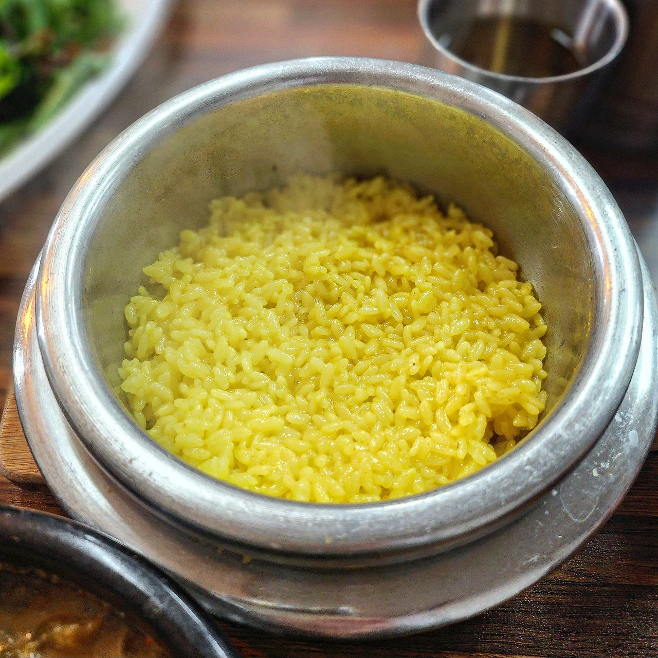 추어탕과 함께 나와 솥 속에서 예쁘게 뜸 들어있던 노란 밥에서는 아주 은은하게 강황향이 났다. 분명 풍미가 상당히 강한 식재료지만, 묵직한 추어탕 국물 속에서 밥알들을 오롯이 부각시켜주는 역할을 하되, 그 맛을 해치지 않을 정도의 절제된 상태였다. 미리 밥을 어느 정도 덜고 뜨거운 물을 부어둔 솥에서는 구수한 숭늉이 우러났다. 여전히 은은한 강황향을 품은 채 허겁지겁 배를 채우느라 입 안 가득 들어찼던 다양한 맛을 정갈히 정돈해 주었다.
