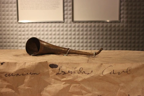 이런 생각을 하며 나는 더 안으로 들어갔다. 그러다 피아노 위에 놓인 뿔피리 같이 생긴 이상한 금속물체에 눈이 갔다. 저게 뭐지 하는 다음 순간 나는 심장이 멎는 전율을 느꼈다. 그것은 베토벤의 보청기였다. 말년에 청력을 거의 상실한 베토벤은 이 보청기에 의지하여 사력을 다하여 작곡에 임하였다. 처음에는 작게 만들었지만 나중에는 나팔만큼 크게 만들었다고 했다. 바로 그 나팔만큼 큰 보청기가 내 눈 앞에 있었다. 아니 그 순간 내 눈 앞에는 베토벤도 있었다. 한 손으로는 커다란 보청기를 귀에 갖다 대고 다른 한 손으로는 피아노의 건반을 두드리며 필사적으로 음을 들으려 하며 오선지를 채우고 있었다.