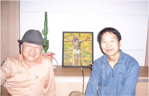 다시 아파트로 돌아와 이런저런 이야기를 하다 보니 베란다에 자전거가 타기 운동기구가 하나 보였다. 누군가 버린 것을 주어서 갖다 놓고 저녁때 운동을 한다고 했다. 그런데 자전거 옆의 유리창에 종이가 두어 장 붙어 있어 무엇인가 했더니 자전거를 타면서 성경을 외우기 위해 성경 구절을 써서 붙여 놓은 것이었다. 역시 최박사다운 발상이었다. 아파트 거실 TV가 있을 자리에는 TV는 없고 대신 최박사가 손수 그린 예수님의 그림이 있었다(최박사의 그림 솜씨는 아마추어의 경지를 넘는다). 아내가 사 갖고 간 선인장을 예수님 그림 옆에 놓자 무언가 이야기가 되는 듯하였다. 그것을 배경으로 최박사와 사진 한 장을 찍었다. 나는 동해시의 이 작은 아파트가 나중에 최박사의 꿈이 이루어지는 산실이 될 것이라고 믿는다.