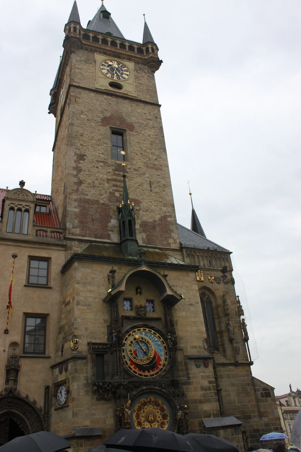 프라하에 온 다음날 우리가 먼저 찾은 곳은 프라하의 구시가지(舊市街地) 광장이었다. 이곳 광장엔 언제나 인파가 흘러 넘친다. 구시가지 광장으로 향하는 작은 골목골목마다 즐비한 가게들이 여러 가지 눈요기거리로 사람들의 호기심을 불러 일으키기도 하지만 무엇보다도 광장엔 오를로이(Orloj) 천문시계와 얀 후스(Jan Hus) 동상 등의 굵직굵직한 프라하의 명물 볼거리가 모여있기 때문이다. 우리 부부가 구시청사(舊市廳舍) 근처에 도달했을 때엔 조금씩 비가 내리고 있었지만 벌써 많은 사람들이 모여서 천문시계를 바라보고 있었다. 1410년에 만들어진 이 시계는 만들어지기는 세계에서 세 번째이지만 아직도 제대로 작동하고 있는 천문시계로는 가장 오래된 것이다. 게다가 이 시계는 매 시간마다 흥미로운 공연을 벌이기에 사람들이 모여든다.