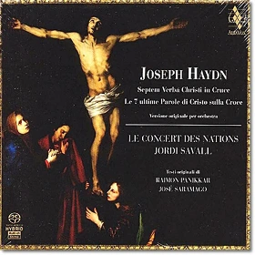 화요음악회에서는 이 곡을 조르디 사발(Jordi Savall)이 지휘하는 르 콩세르 데 나시옹(Le Concert des Nations)의 관현악 연주로 들었습니다. 조르디 사발은 스페인이 낳은 연주자이며 지휘자이며 또한 고음악 전문가입니다. 한국에도 몇 차례 왔으며 한국에서 그의 이름은 알렝 코르노(Alain Corneau) 감독의 영화 ‘세상의 모든 아침’(Tous les Matins du Monds)’의 사운드 트랙 연주로 널리 알려져 있습니다. 이 연주에는 예수님의 일곱 말씀의 낭독이 포함되어 있습니다. 라틴어로 낭독되지만 말씀을 들은 뒤 음악을 들으면 십자가에 달리신 예수님의 마음을 더 잘 느낄 수 있습니다. 고음악 연주의 거장인 사발이 직접 창단한 르 콩세르 데 나시옹의 연주를 듣고 있으면 이천 년 전 골고다의 골짜기의 정경을 눈 앞에 보는 느낌이 듭니다.