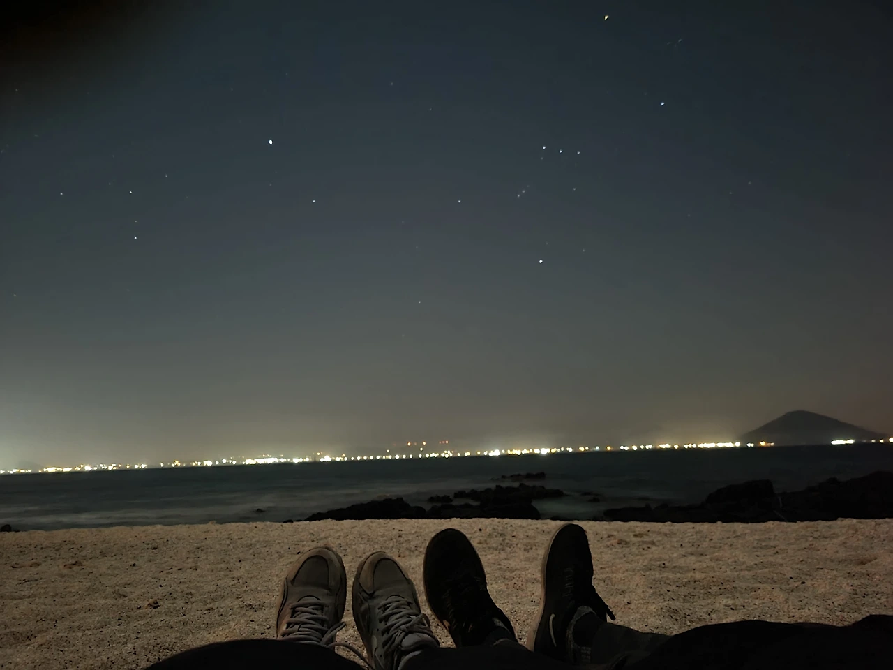밤에 한번 자면 아침까지 통잠을 자주는 아가를 재우고 남편과 걸어서 서빈백사엘 갔다. 아무도 없는 해변. 걸을까, 하고 갔는데 둘이 마음이 통했던 것 같다. 둘 중 한 사람 "우리 누워볼까?"하는 말에 고민않고 나머지 한사람도 바로 "그래" 대답했다. 남편이 먼저 눕고 나란히 옆에 누울 생각으로 갔는데 자기 위에서 하늘보고 누워보라고 말하는 남편. 무겁다고 거절했는데도 "밑에 추워~ 바닥에 말고 내 위에 누워서 하늘 한번 봐봐~" 마지못해 남편 배 위에 덩그러니 누워 같이 하늘을 봤다. 둘 다 얼마간 말이 없었다. 별들은 소리없이 빛나고 파도 소리만 잔잔하게 들려온다. '이런 거 하려고 우리가 여기에 왔었구나.'