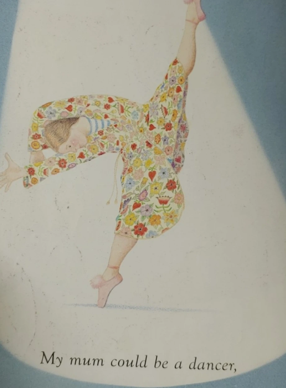 My mum could be a dancer, or an astronaut. She could be a film star, or the big boss. But she's MY mum. 낮에 아가에게 앤서니브라운의 My mum이란 그림책을 읽어주다 저 페이지에서 갑자기 눈물이 날 것만 같았다. 내 무릎에 앉은 아가의 등 뒤에서 조금 울먹였고 끝까지 읽어주고 책을 덮었다.