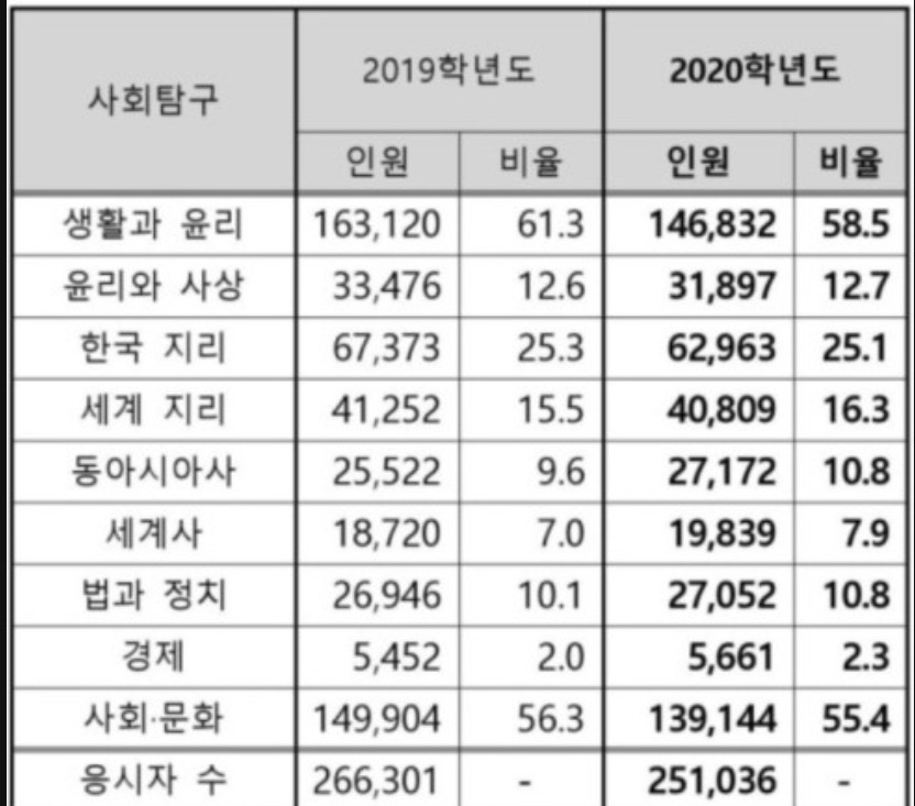 70%의 학생이 윤리를 선택한다. 유교문화권이기도 한 영향도 있겠지만 아마도 시험성적 때문이 가장 큰 영향일 것이다.