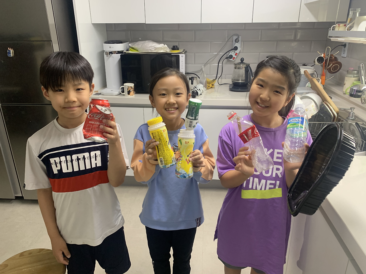 어느 날 놀이터에 놀러간 아이들이 쓰레기를 잔뜩 들고 집으로 들어온다.
