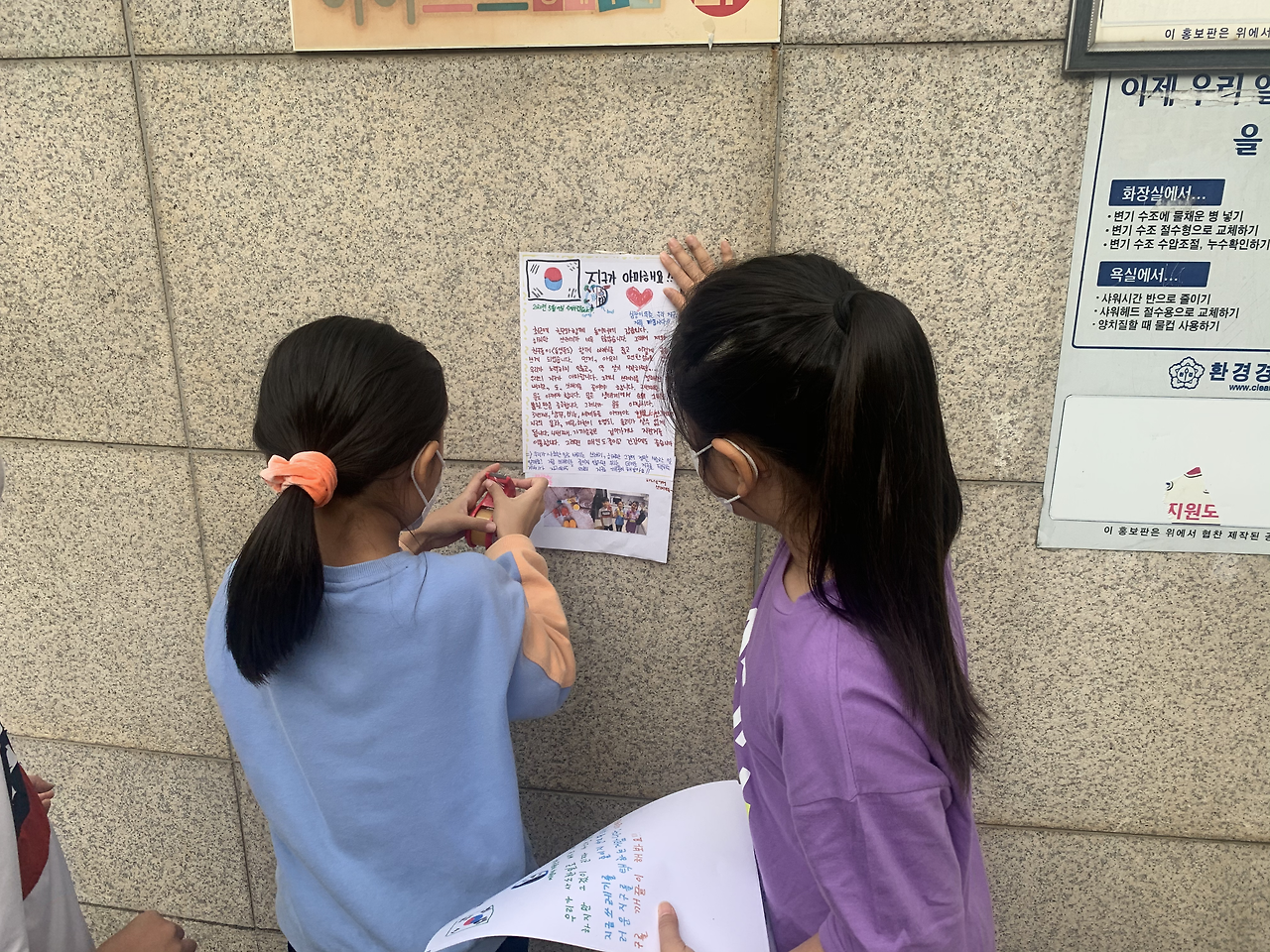 따라 나가서 붙이는 것을 지켜봐줬다.