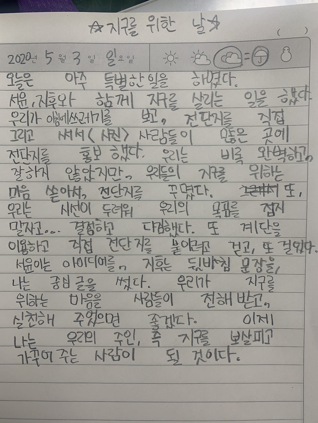 그렇게 20여장을 동네 곳곳에 붙이고,, 지구를 지켰다는 뿌듯한 마음을 가지고 집으로 돌아온다.