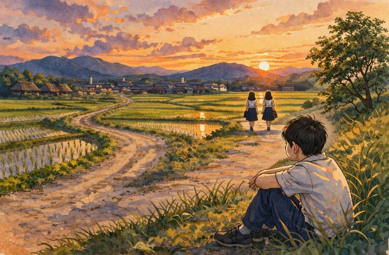 누나들이 시내로 가는 버스를 타려면 마을 앞 굽은 비포장 길을 지나 면 소재지까지 걸어가야 했다. 누나들이 시내 자취방으로 갈채비를 하기 위해 집으로 내려간 후, 한 시간 정도 지나면 버스를 타기 위해 꾸불꾸불한 그 길을 두 누나가 나란히 걸어가는 모습을 나는 늘 뒷산 아래 논에서 내려다보았다. 두 누나의 모습이 점점 작아져 면소재지의 골목 사이로 사라질 때까지 나는 한참을 바라보곤 했다. 누나들이 시야에서 사라졌지만 마음속으로 나는 누나들 뒤를 한참 더 따라갔다. 이내 쌀쌀한 저녁 바람이 산과 들을 감싸고, 풀벌레 소리가 여기저기서 들려오면 그제야 나는 누나들을 놓아주지만 먹먹해진 마음은 계속해서 여운으로 남아 쓸쓸함을 더했다.