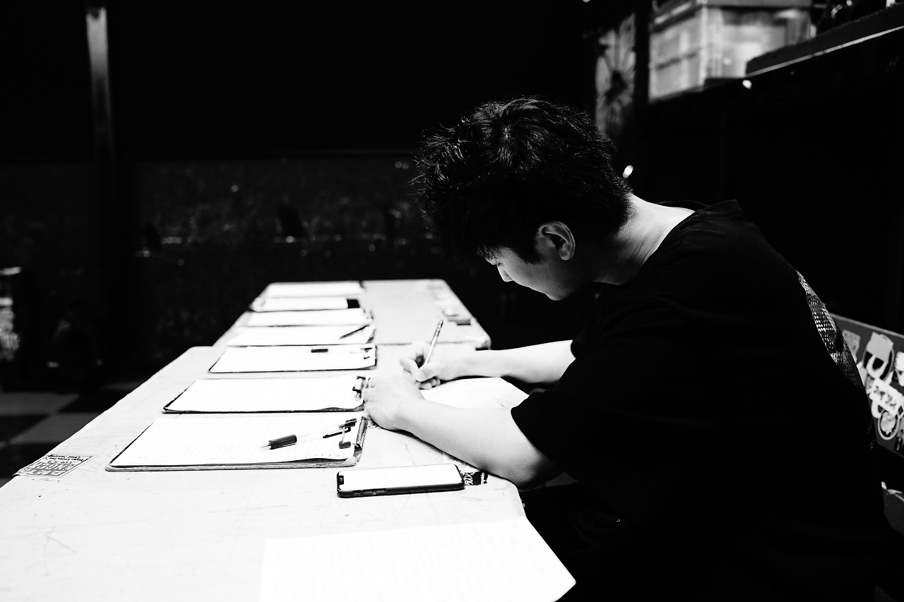 우여곡절 끝에 도착한 공연장이었지만, 워낙에 여유를 두고 출발한 덕에 큰 차질은 없었다. 판매할 CD와 열쇠고리, 티셔츠를 판매 데스크에 깔아놓고, 한국에서 미리 작성해온 큐시트(공연 중 음향, 조명, 연출에 대한 세세한 사항을 곡별/시간대별로 기록해서 음향/무대 스태프에게 전달할 내용을 적은 문서)를 종이에 옮겨 다시 작성해서 전달하고 리허설을 위해서 무대에 올랐다.