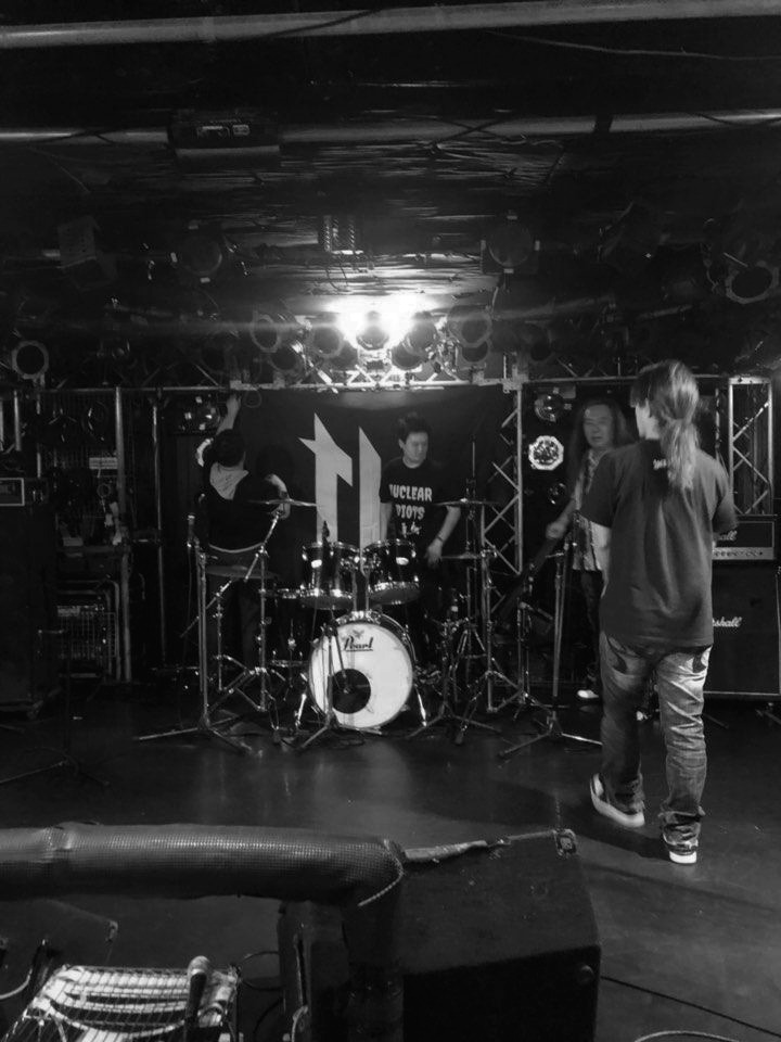 현지에서 공연을 한국 측과 공동으로 주최한 아키야마 아저씨와 오랜만에 만나 반갑다고 인사를 나눈 후에, 당일 공연의 영상을 촬영해주기로 한 분과도 간단히 통성명을 하고 리허설을 시작했다. 타지에서 하는 공연이라고는 믿기지 않을 정도로 다행히 현장 스태프와의 커뮤니케이션은 꽤나 원활했고, 메탈 공연 문화 자체가 상대적으로 오랜 기간 정착되고 발달한 일본인지라 사운드를 잡는 데에는 전혀 무리가 없었다. 리허설이 끝날 무렵 아키야마 씨가 앞으로 다가오더니 가운데 있는 발판을 가리키며 이게 버튼을 누르면 불도 켜진다며 웃으며 자랑을 늘어놓았다. 일본의 라이브하우스는 이런 화려한 디테일에 굉장히 신경을 쓰는구나 정도의 감상으로 나도 웃으며 호응해드리고 리허설이 끝난 무대에서 내려왔다.