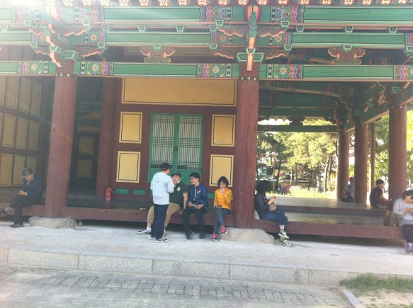 새롭게 만들어진 남천교엔 누각이 있다. 이미 많은 사람들이 앉아 있지만, 우리도 남천교에 누워 시간을 보냈다. 객사에선 되지 않던 ‘아무 것도 하지 않을 자유’가 여기에선 웬만큼 되었다. 다리를 쭉 펴고 누워 있기도 했고, 승빈이가 사온 과자를 함께 나누어 먹기도 했다. 과자 하나가 사라지는 건 순식간이었지만, 화기애애한 이런 모습은 오래도록 간직하고 싶은 순간이었다.