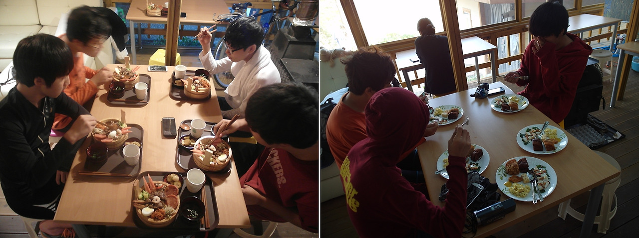 주인 내외분이 되게 편안하게 대해주셔서, 우리도 편하게 씻고 저녁이 준비될 때까지 인터뷰를 하며 쉬었다. 저녁은 한 공기 밥 위에 반찬에 올려진 형태로 주며, 아침은 서양식으로 챙겨 준다. 일인당 삼 만원인데 계획을 짤 때 현세가 알아본 곳이라 우리는 오게 되었다. 아이들은 분위기도 좋고 자는 곳도 맘에 든다고 평했지만, 밥과 반찬을 더 달라고 할 수 없는 점은 불만족스럽다고 하더라.