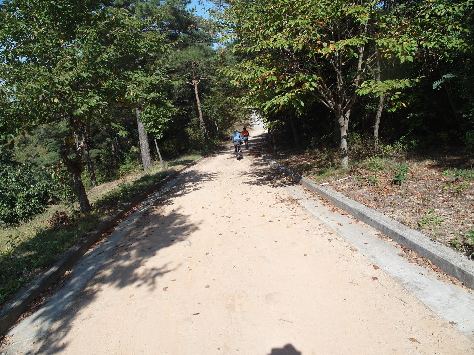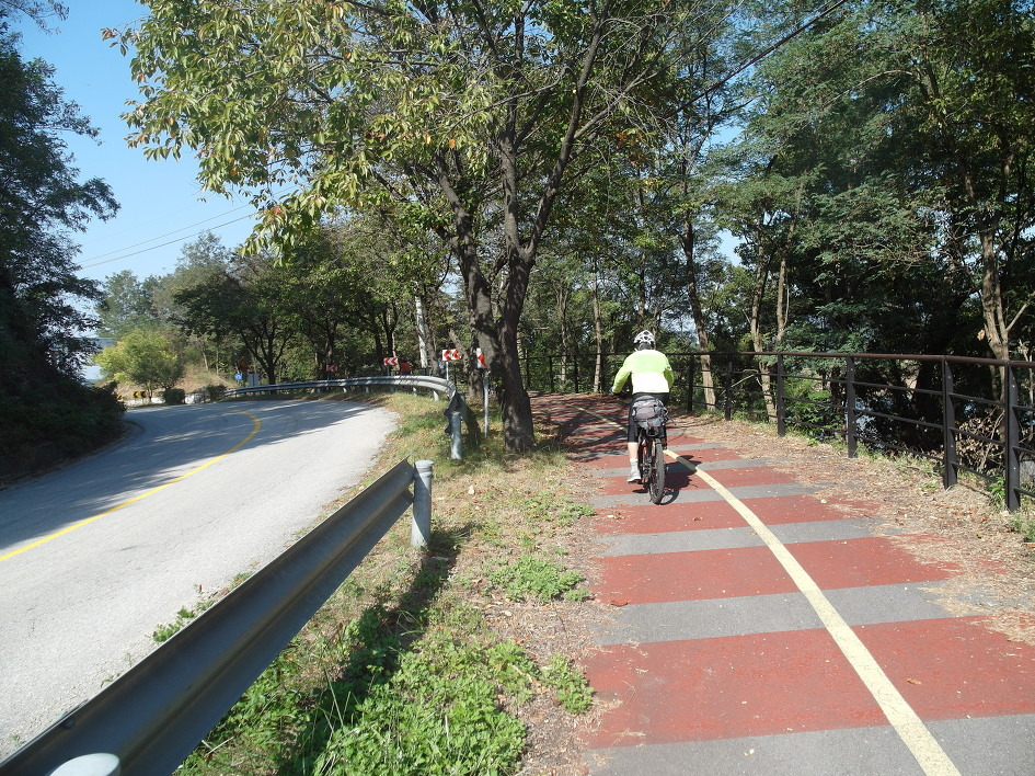 상주박물관에서 자전거 도로로 가기 위해서는 낮은 언덕 넘어야 한다. 경사가 급하기 때문에 오를 때 꽤나 애를 먹었다. 그래도 조금만 끌고 올라가니 바로 정상에 도착하더라.
