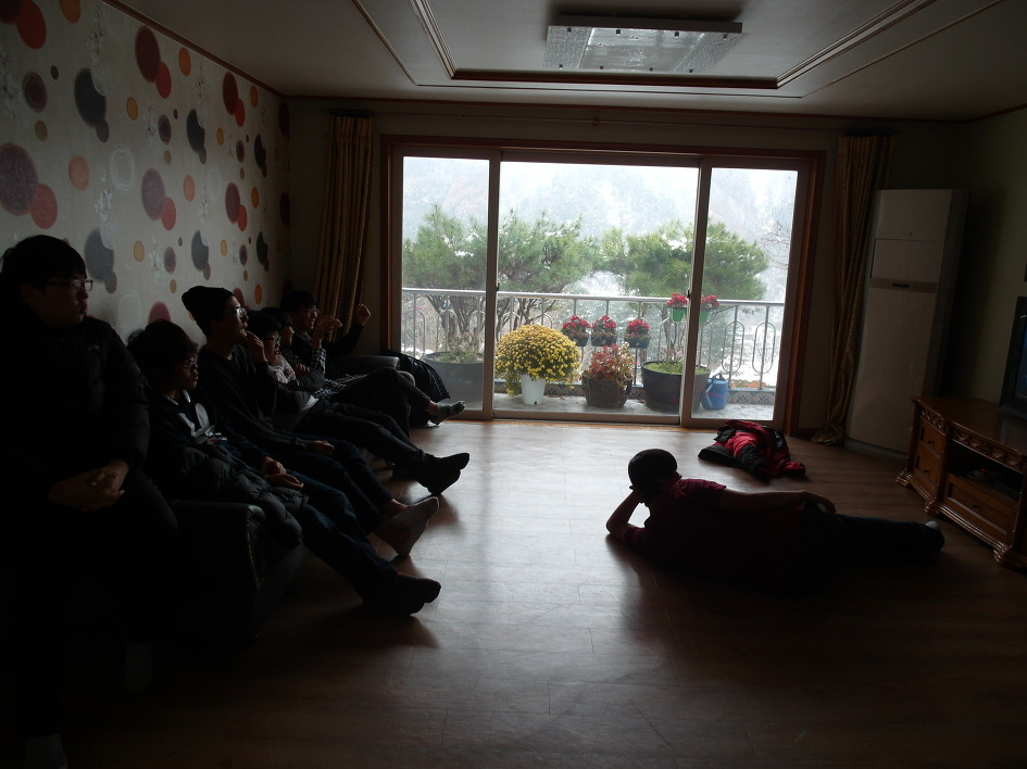 이런 이야기를 들으며 펜션에 도착했고 여학생들이 장을 모두 보고 올 때까지 우리는 쇼파에 누워 티비를 보며 기다렸다.