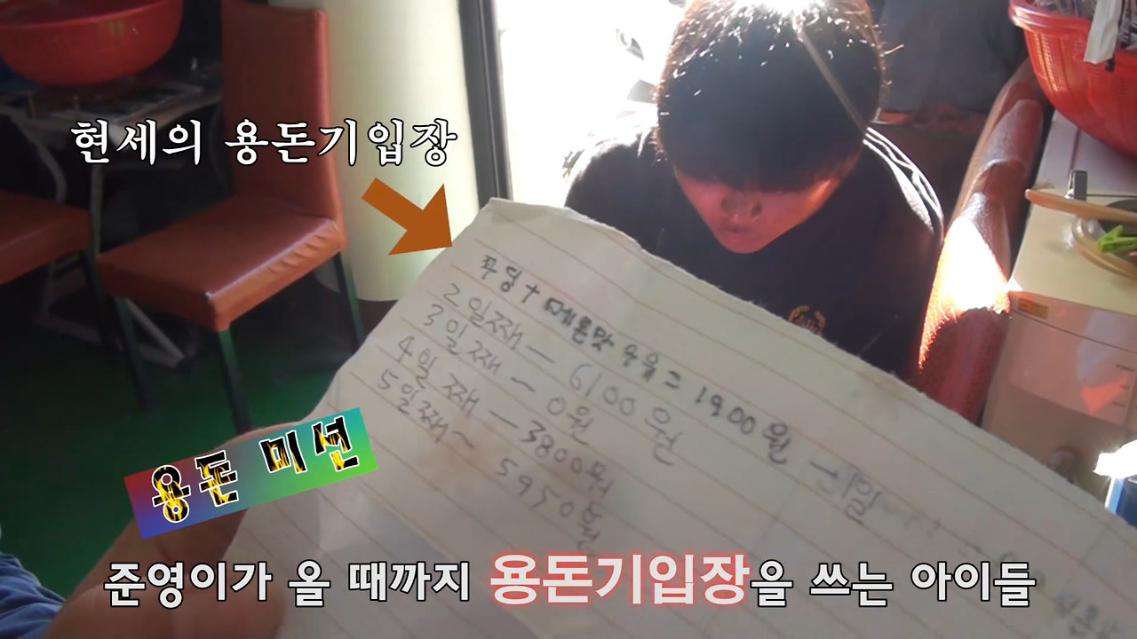 준영이가 내려올 때까지 아이들은 부랴부랴 용돈기입장을 꺼내 정리하기 시작했다. 당연하지만 시간이 지나면 기억은 희미해진다. 그러니 재익이와 현세는 열심히 기억하여 적고 있지만 여러 가지를 빠뜨리고 적었던 것이다. 그에 반해 민석이는 틈틈이 적어놓은 게 있어서 거의 정확하게 기록하고 있었다. 이 미션이 정작 필요한 사람은 재익이와 현세였는데, 그 둘은 늘 하던 대로 별로 생각 없이 돈을 썼고 대충대충 하기만 했다.