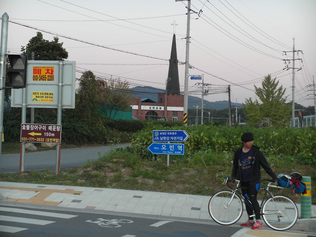 그곳에서 얼마를 달리니 국토종단 때 신세를 졌던 오빈교회가 보이더라. 거기서 목사님과 밤늦도록 종교에 대한 이야기를 나누며 서로의 신앙이 어떤지 확인했던 곳이라 기억에 난다. 생각 같아선 들어가 인사를 하고 싶었지만, 자전거 여행 중이어서 몰골도 몰골이고 이젠 시간이 꽤 지나 목사님은 내가 누군지 모를 것이기에 들어가진 않았다.