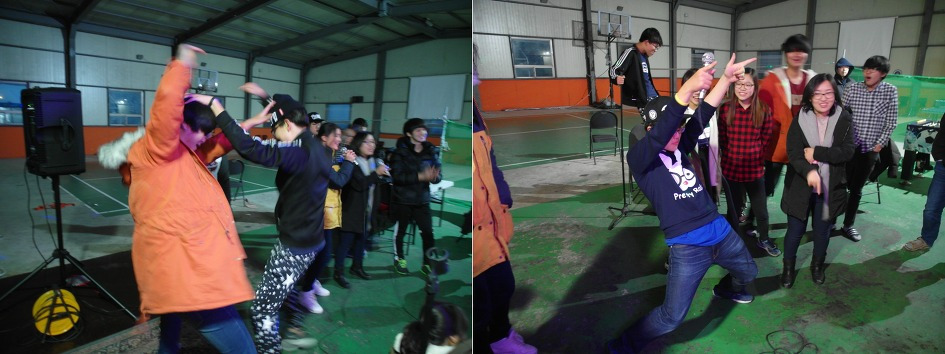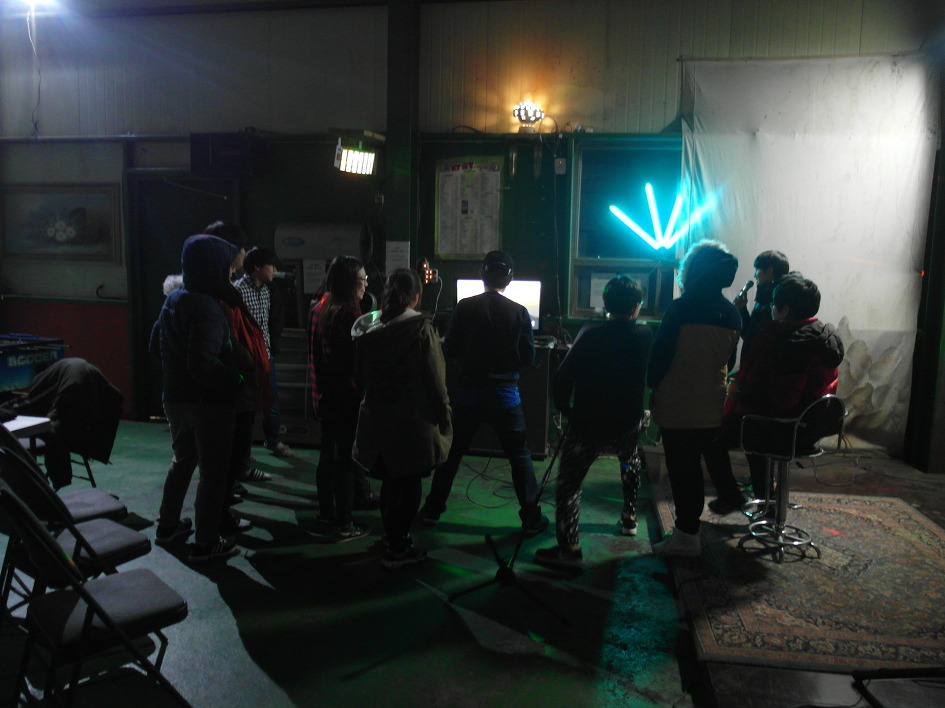 다섯 번째 종목은 노래 부르기다. 노래 부르기는 노래방기기가 설치된 이 펜션의 특성으로 진행할 수 있었다. 이걸 진행하다보니 노래 부르기를 즐기는 아이들이 많다는 사실을 처음으로 알 수 있었다. 지훈이는 ‘바람기억’이란 노래를 지겹도록 반복하여 듣고 따라 부르며 노래에 대한 열정을 드러냈었고 현세와 태기는 탁월한 노래 실력으로 학교 안에 노래 소리가 멈추지 않도록 할 정도였으며 지민이는 여행 전날까지 노래를 틀어놓고 함께 따라 부르며 꼭 이겨야 된다는 의기를 북돋웠으니 말이다. 즉, 노래 부르기는 모든 아이들의 초미의 관심사임과 동시에 실력차도 그렇게 나지 않기 때문에 해볼 만한 종목이기도 했다. 더욱이 노래방 점수는 그렇게 객관적이지 않다. 그렇기에 어떤 우연적인 요소에 점수를 내맡겨야 하는 상황인지라 아이들은 더욱 긴장 아닌 긴장을 할 수밖에 없었다. 송라는 점수가 잘 나오는 법으로 ‘목소리를 크게 부를 것’과 ‘박자를 맞춰 부를 것’을 주문했는데, 그게 과연 맞는지 아닌지는 해봐야만 아는 상황이었다. 어찌 보면 노래 부르기는 경합이라기보다 그저 함께 어울려 노는 시간이라 할 수 있었다.