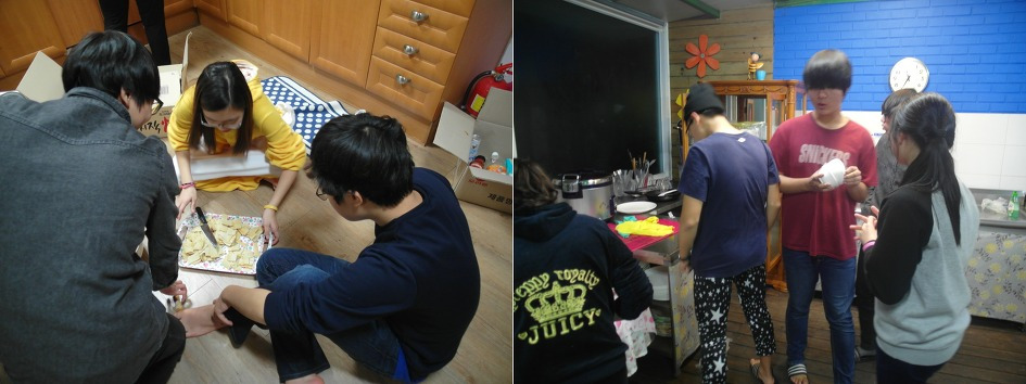 아이들은 쉬지 못하고 두 개의 조로 나누어서 요리를 하기 시작한다. 한 조는 떡볶이를 만들고, 다른 한 조는 볶음밥을 만든다. 저번 부안여행 때도 세 팀으로 나누어져 요리를 함으로 노는 사람 없이 함께 모여 요리를 만들 수 있었다. 그런데 저번 여행에 비해 사람은 많은데도 불구하고 두 팀으로 나누어져 요리를 하다 보니, 하는 아이들만 하고 노는 아이들은 노는 사태가 발생한 것이다. 당연히 함께 만들어 먹자는 취지로 출발한 것이지만, 요리도구도 넉넉하지 않고 적극성에도 차이가 있다 보니 서로 갈등이 빚어지고 있었다. 열심히 하는 아이들은 열심히 하는 아이들대로 “왜 우리만 이렇게 열심히 해야 하죠?”라는 불만이 있었고, 그렇지 않은 아이들은 그 아이들대로 “뭘 하라고 하지도 않고 성질부터 내잖아요?”라고 불만이 있었다. 솔직히 하루 이틀 알고 지낸 사이가 아니기에 서로 원만하게 얘기를 하며 갈등을 해소할 수 있다면야 오죽 좋겠냐만은, 그건 이상적으로나 가능한 얘기였을 뿐이다. 아이들은 어찌 되었든 갈등을 해소하려 하기 전에 자신의 감정을 앞세워 불만만 표시하기 바빴으니 말이다. 이러다간 밥 한 끽 먹기도 전에 의부터 상하겠다.