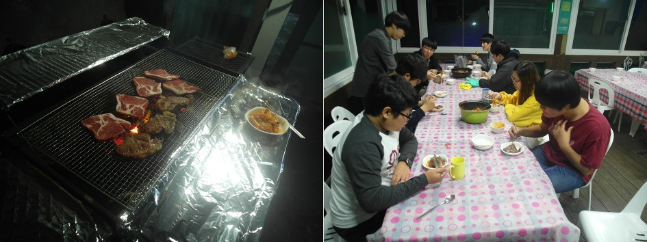 요리를 만드느라 서로 갈등을 빚기도 했지만, 저녁을 먹을 때만큼은 행복한 시간이었다. 함께 먹을 사람들이 있다는 게 좋긴 하다. 도란도란 이야기를 나누며 밥을 먹진 않지만, 이렇게 한 학교에 다니는 인연으로 엮여 밥을 먹고 여행을 올 수 있다는 건 축복이긴 하다. 우린 어드메서 어떤 인연으로 엮인 사람들일까?