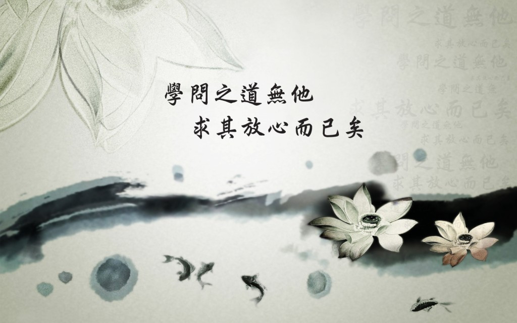 孟子曰:“仁, 人心也; 義, 人路也. 舍其路而弗由, 放其心而不知求, 哀哉! 人有雞犬放, 則知求之; 有放心, 而不知求. 學問之道無他, 求其放心而已矣.”