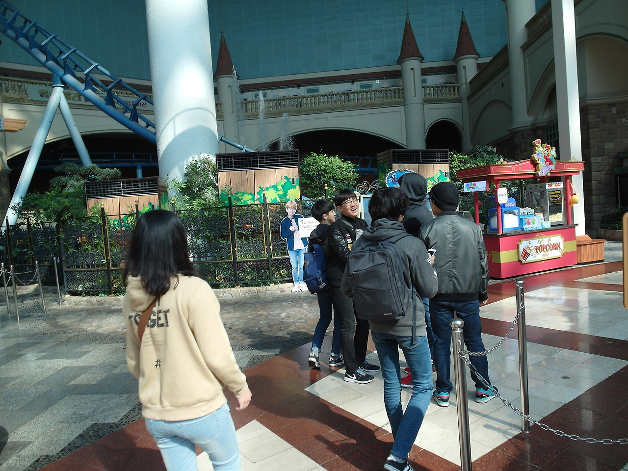 오늘 아이들은 자연스럽게 두 팀으로 나누어져 다니게 되었다. 준영, 지훈, 태기가 한 팀이 되어 다녔고, 민석, 현세, 지민, 규민이가 한 팀이 되어 다녔다. 난 자연스럽게 두 번째 팀에 합류하여 함께 놀이기구를 탔다. 이 아이들은 오전엔 실내에서 탈 수 있는 것을 다 탈 생각이었나 보다. 다행히 아직은 소풍 시즌은 아니기에 사람들은 많지 않았다.