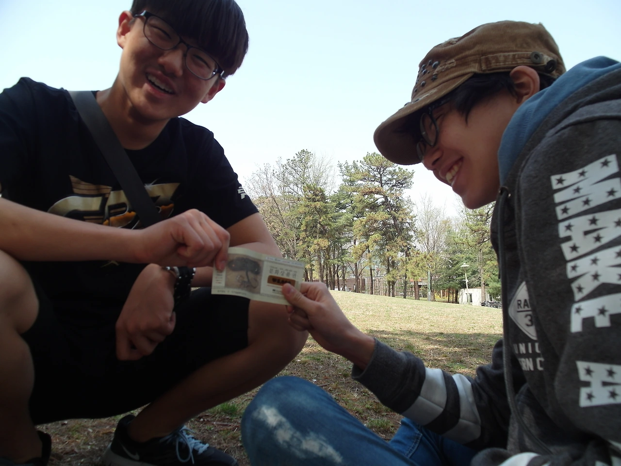 먼저 들어간 아이들은 그늘에 돗자리를 펴고 있노라고 했다. 대공원이 크기 때문에 한참이나 찾아 헤맨 끝에 드디어 찾을 수 있었고, 그러다 보니 벌써 30분이나 훌쩍 흘러 있었다. 그 때 태기는 자리에 앉기도 전에 민석이를 부르더니, 도서상품권을 가져 왔다며 거저 줬다. 그냥 막 주긴 아쉬웠던지 우승상품을 건네주듯 포즈를 취하고 주긴 했지만, 거기엔 아깝다는 생각 따윈 없어 보였다. 상품권은 현금처럼 사용할 수 있기에 가지고 있으면 언젠가 쓸 곳이 생길 텐데도, 지금은 쓸 곳이 없다며 준 것이다. 자신은 필요가 없다며 주는 모습이나, 그것도 손수 챙겨 와서 군소리 하지 않고 주는 모습에서 태기의 캐릭터가 남다르다는 걸 느낄 수 있었다.