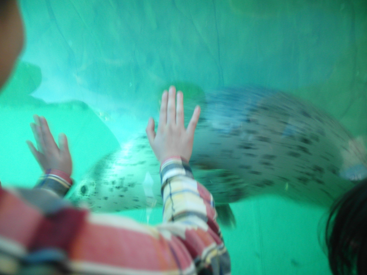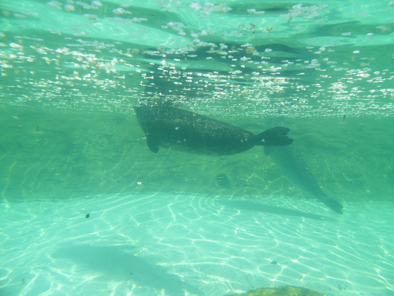 거기서 밑으로 내려가면 아쿠아리움 같은 곳이 나온다. 위에서 볼 땐 물개는 물 밖으로 자주 나와 쉽게 볼 수 있었지만, 물범을 물속에서 잠을 자는 녀석이기에 제대로 볼 수가 없었다. 그러니 물속을 훤히 들여다 볼 수 있는 곳에서 아주 원 없이 물범을 볼 수 있더라. 물개에 비해 물범은 훨씬 컸으며, 꼭 매우 살찐 장어 같은 느낌이었다.