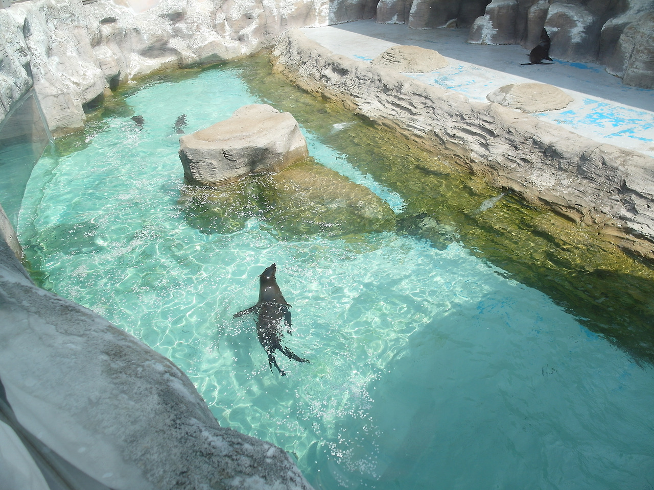 이제 본격적으로 동물들을 관람하기 위해 돌아다녔다. 먼저 바다동물관에 가니 물개들이 자유롭게 헤엄치며 놀고 있더라. 갇힌 곳에서만 헤엄칠 수 있는 한정된 자유지만, 그럼에도 물개가 맘껏 유영하는 모습은 섹시했다.