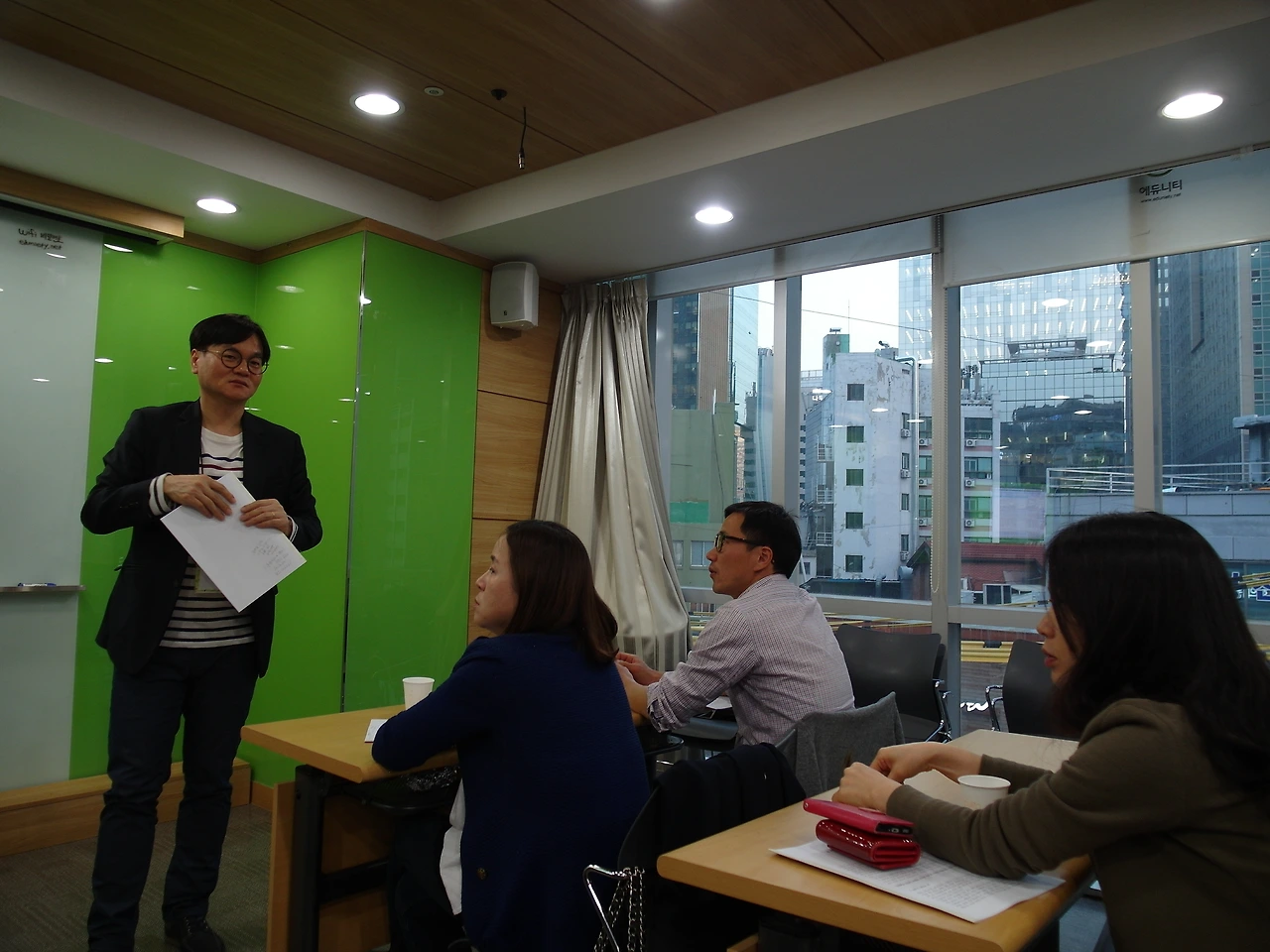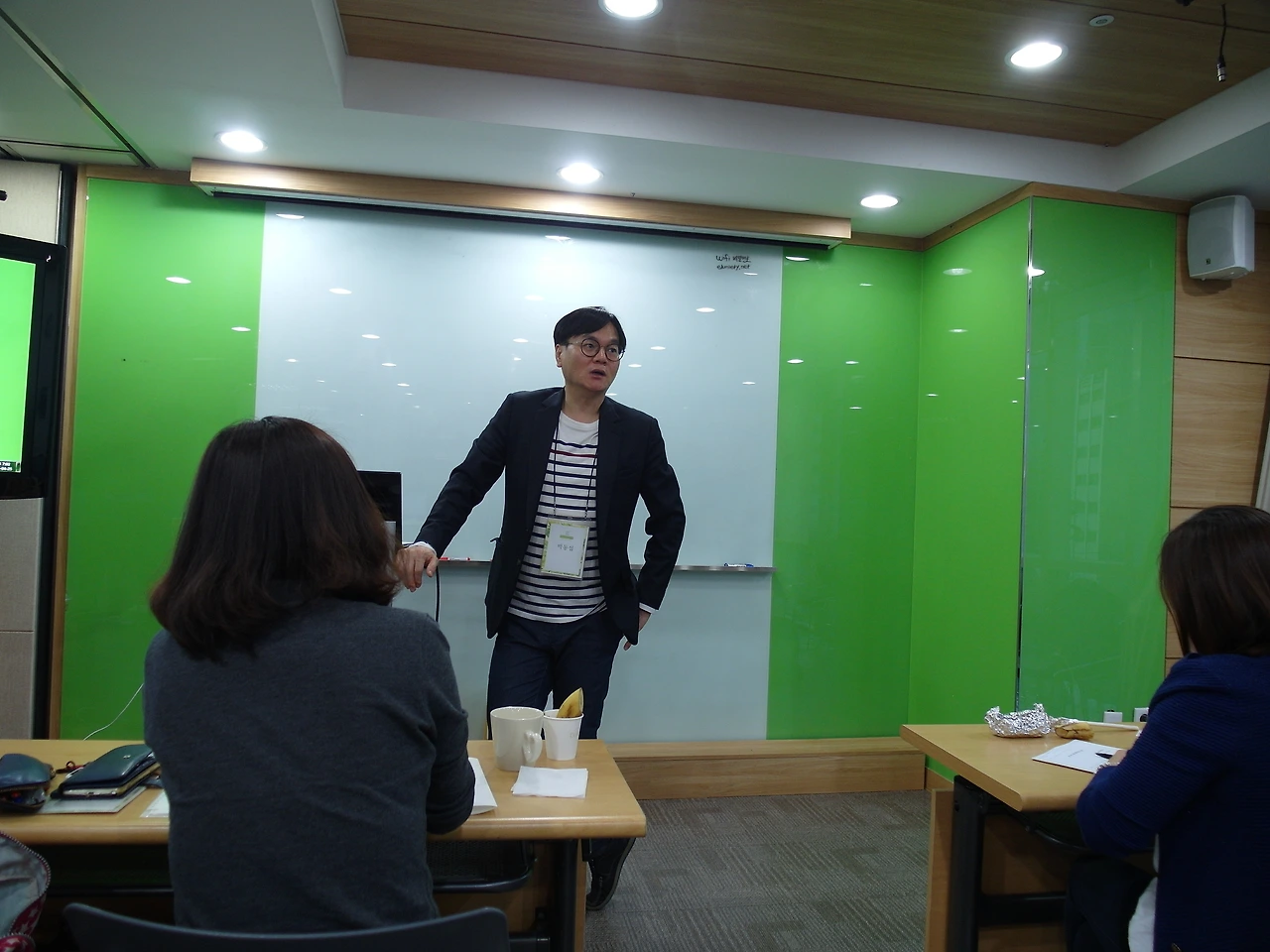 학교가 끝나고 바로 와서인지 에듀니티에 도착한 시간은 6시 30분이었다. ‘설마 이렇게 이른 시간에 누가 강의실에 오겠어?’라는 생각으로 강의실에 들어서니, 세상에나 나보다 먼저 온 사람이 있었다. 그 사람은 바로 트위스트 교육학의 창시자이자, 이동연구소의 소장인 동섭쌤이었다. 오늘 오전에 내발산초등학교에서 학부모 대상의 특강이 있어서 3시간 강의를 하고 바로 온 것이라 하더라.