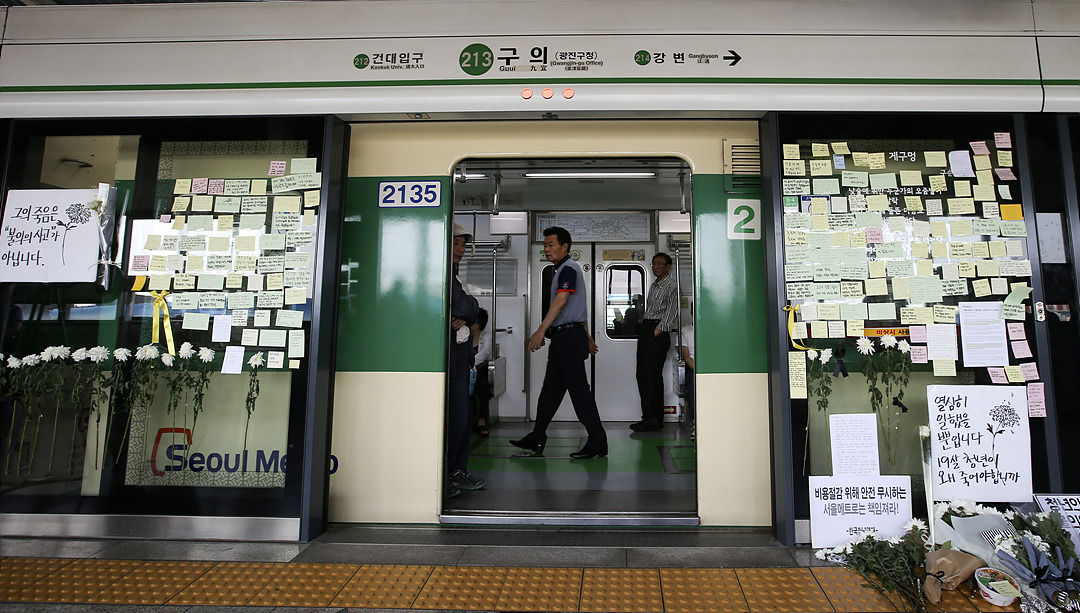 스크린도어 수리는 원칙적으로 2인 1조로 작업을 해야 한단다. 하지만 이날 구의역엔 김군만 작업을 하고 있었고 스크린도어 안쪽 센서가 이상하다는 것을 알고 혼자 들어가 고치다가 사고가 난 것이다. 현실이 이러니 메트로 관계자는 ‘원칙을 지키지 않은 정비업체 직원의 부주의’ 때문에 사고가 난 것이라며 모든 책임을 전가했다.