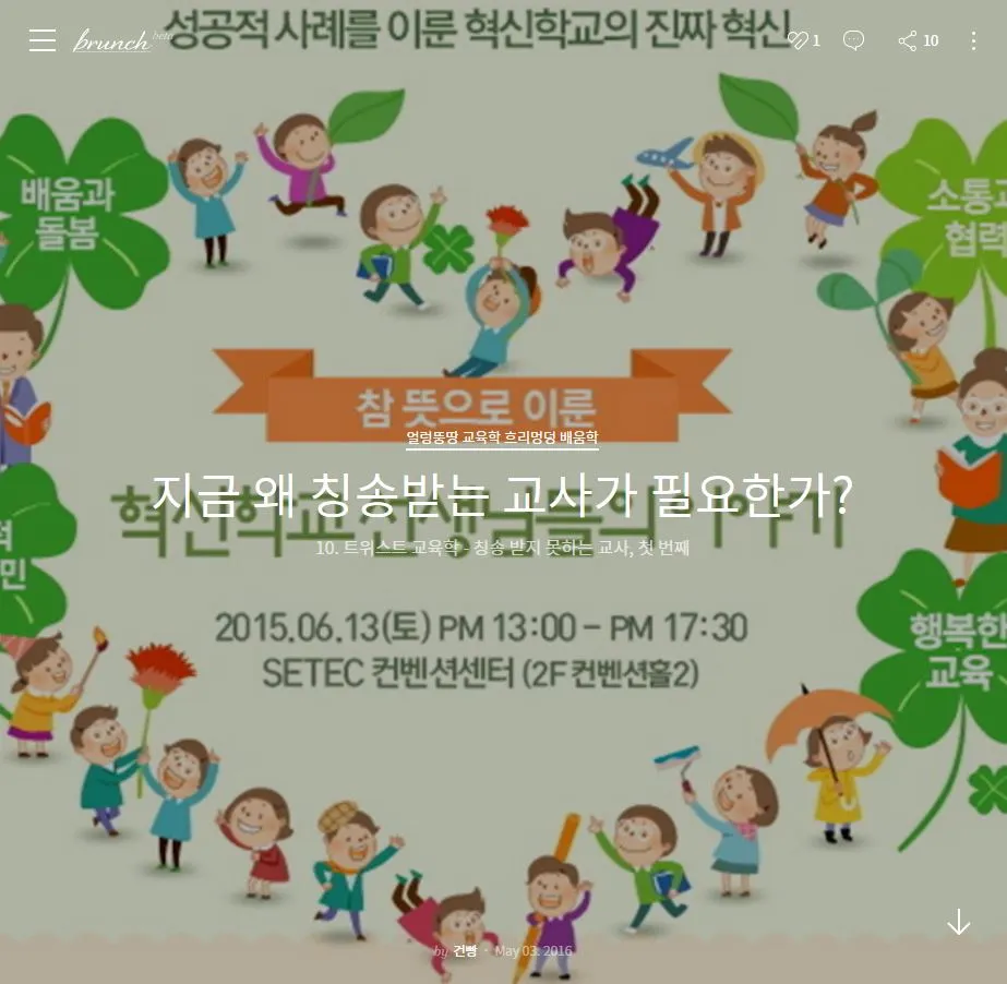 셋째 강의의 제목은 ‘지금 왜 칭송받지 못하는 교사가 필요한가?’이다. 당연하게도 ‘수업을 잘하는 교사’, ‘학생의 눈높이에 맞추는 교사’, ‘수업 도중에 질문을 많이 하는 교사’, ‘학생들과 함께 무언가 만들어가는 교사’가 좋은 교사라 생각했고, 그런 교사들이 칭송받는 학교가 좋은 학교라 생각했다.