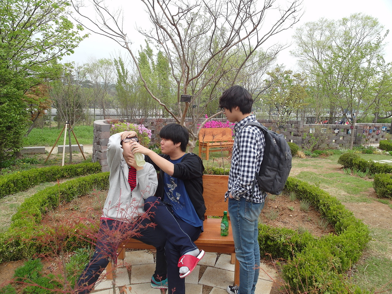 이미 평화의 공원에도 많은 사람들이 몰려들고 있더라. 어린이대공원과는 달리 대부분은 소풍을 나온 학생들이었다. 우린 난지연못을 지나 평화의 공원 안쪽의 벤치에 자리를 잡았다.