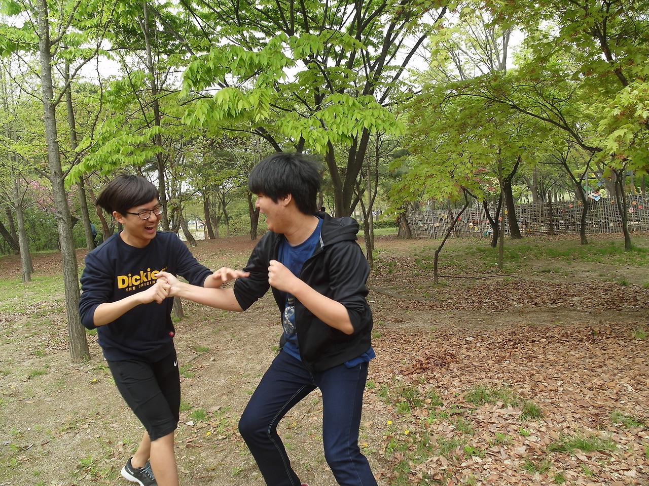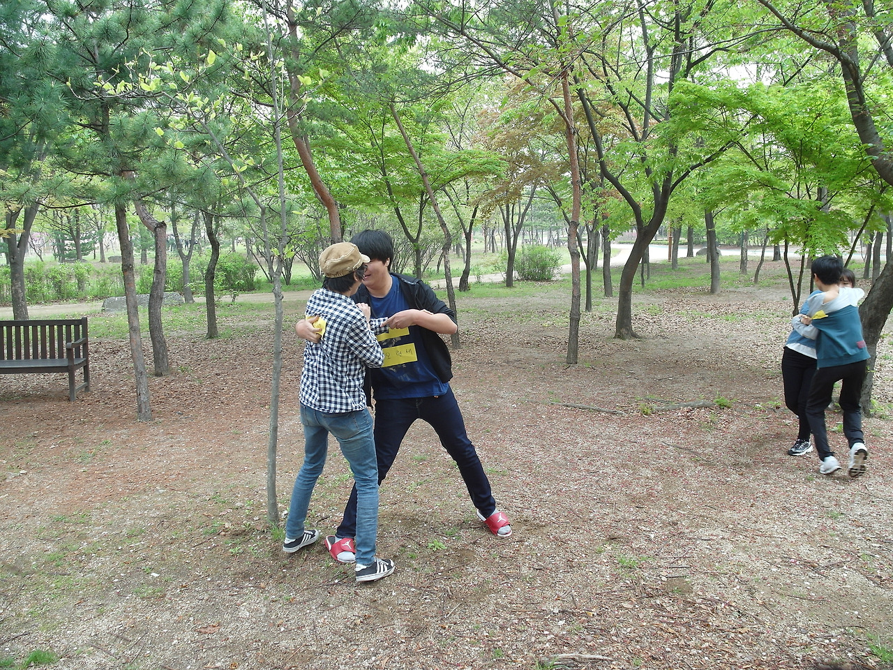 그래서 역에 도착하여 하늘공원에 가기 위해 지도를 살펴볼 때 승태쌤이 “하늘공원으로 갈 수도 있지만, 거기까지 가려면 멉니다. 바로 이 근처에 평화의 공원이 있어 런닝맨을 하기에 더 좋으니, 그곳으로 갑시다”라고 말했다. 아이들도 어떤 장소에 간다는 것보다 그저 야외활동을 나와 무언가를 한다는 게 더 좋았기에, 별 이의를 제기하지 않고 승태쌤 말을 따라 평화의 공원으로 움직였다.