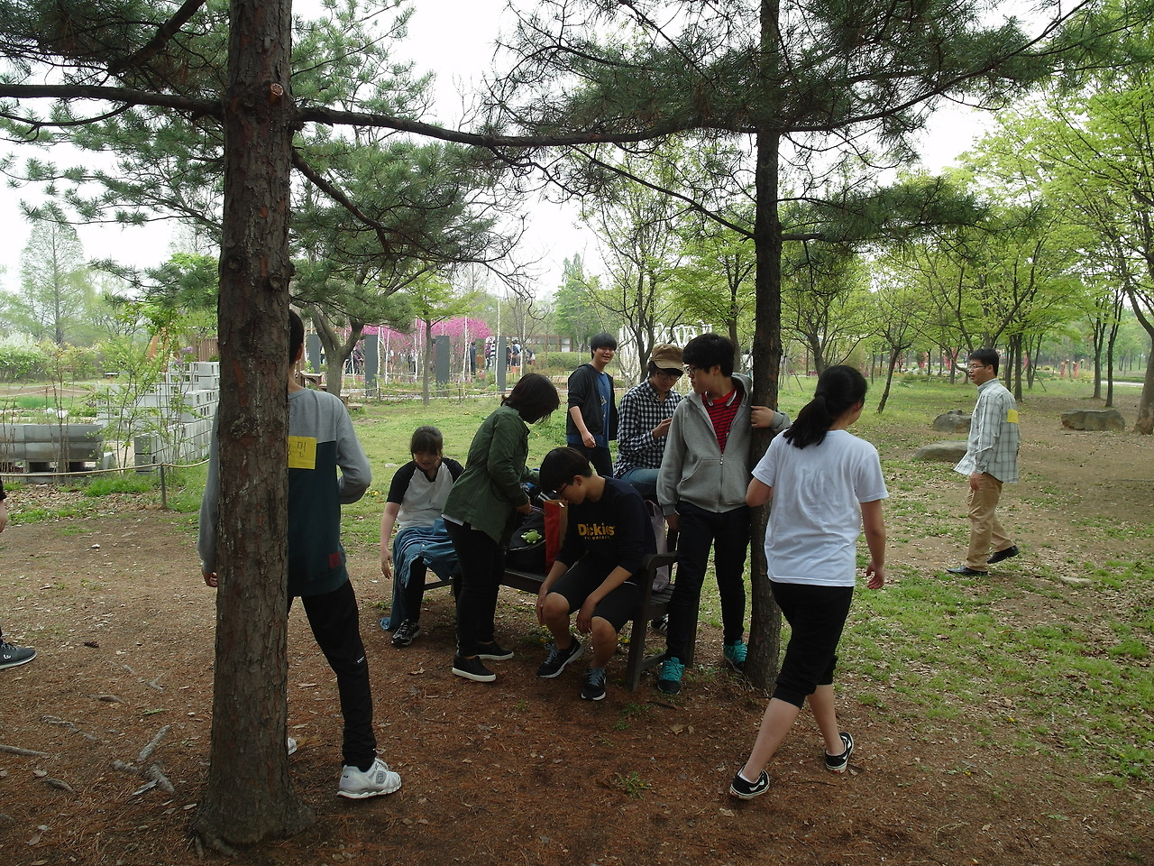 이곳에 오기 전까지만 해도 이번 트래킹 장소는 ‘하늘공원’이었다. 그건 3월 초에 회의를 하며 트래킹 장소를 정할 때 아이들이 의견을 내어 결정된 사항이었다. 그래서 그 결정에 따라 지금까지 정해진 장소들로 갔던 것이다. 물론 저번에 간 어린이대공원은 회의 때 의견으로 나오지 않은 예외의 장소라 할 수 있는데, 그런 경우엔 비상 회의를 소집하여 장소를 바꿔야할 이유를 설명하고 모두 동의할 경우 바꿀 수 있는 것이다. 그 땐 ‘봄이 가기 전에 봄꽃놀이를 할 수 있는 최적의 장소에 가자’는 의견이 반영되어 예외적인 장소로 간 것일 뿐, ‘그런 정도가 아니면 원래 결정된 대로 따르자’는 합의가 있었기에, 이번엔 바꾸지 않고 진행된 것이다.