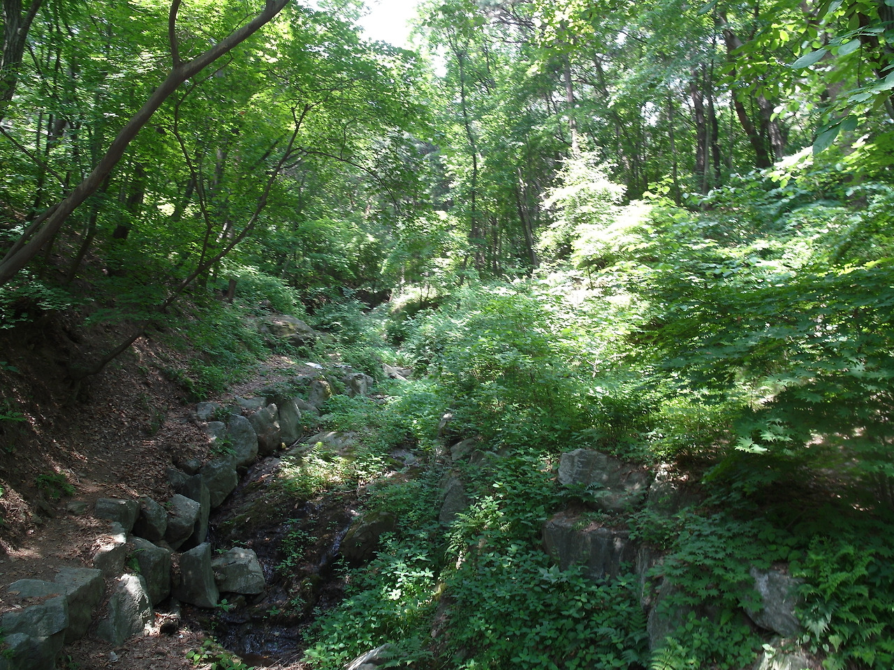 이정표엔 ‘국청사 800m’라고 표시되어 있었다. 그러니 너무도 단순하게 조금만 걸으면 나오려니 생각했던 것이다. 하지만 800m는 그렇게 가까운 거리는 아니었다. 하긴 2013년에 지리산 종주를 할 때 등산로에 표시된 거리와 걷는 시간의 상관관계를 보니, 평지를 걸을 때에 비해 2배의 시간이 걸린다는 것을 알 수 있었던 것과 같다. 예를 들면 평지에서 4㎞는 1시간 거리지만, 등산로에선 2시간 거리니 말이다. 800m면 당연히 평지에선 10~15분 정도의 거리지만, 여긴 경사가 있는 등산로이니만치 20~30분 정도는 잡아야 했던 것이다.