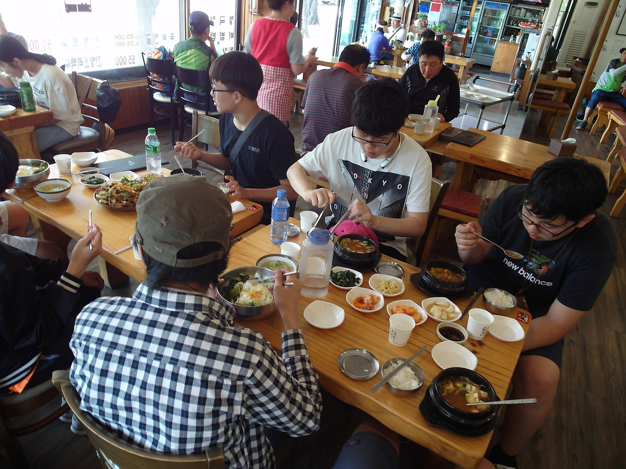 종점에 도착하여 차에서 내렸다. 아직 11시밖에 되지 않았다. 바로 점심을 먹기엔 이른 시간이었기에 아이들이 자유롭게 주위를 돌아다니길 바랐다. 하지만 몇몇의 아이들은 바로 편의점에 들어가서 간식을 사기 시작했고, 몇몇은 파라솔의 그늘 속으로 숨어들었다. 아이들은 그냥 이렇게 시간을 때우다가 점심을 먹었으면 하는 바람이 있는 것 같았다.