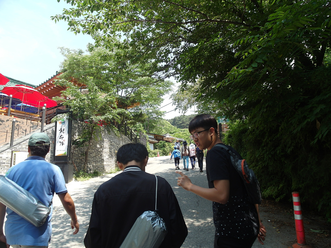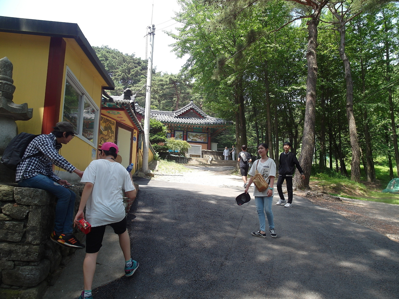 편의점에서 나왔는데 아이들은 그늘에 옹기종기 모여 앉아 스마트폰만 하고 있더라. 이렇게 시간을 보내는 것은 아니라 생각했던지, 승태쌤은 주차장에 계신 분에게 “절이 어디에 있나요?”라고 물어봤고, 얼마 멀지 떨어져 있지 않다는 정보를 듣게 됐다. 그래서 간단하게 산책을 할 겸 우린 마침내 일어서 걷기 시작했다.