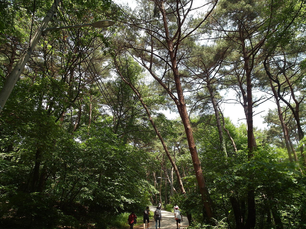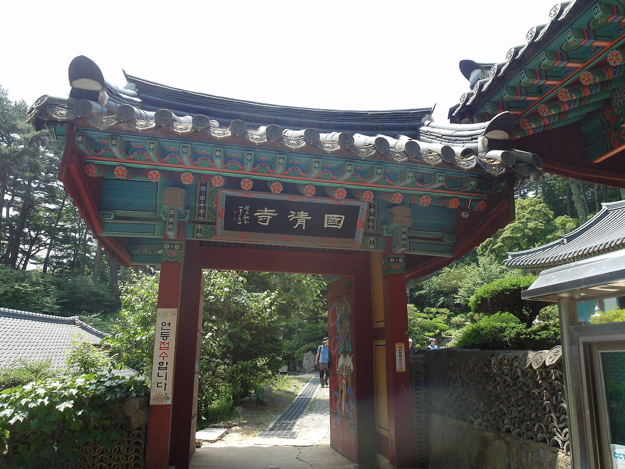 국청사로 올라가는 길은 녹음이 짙게 우거져서, 꼭 밀림 깊숙한 곳으로 걸어가는 듯한 느낌이 들었다. 아이들은 금방 나오지 않는 절 때문에 조금씩 불만이 높아지고 있었지만, 그래도 녹음 속으로 걸어가는 느낌은 좋았다. 조금 더 참고 걸으니, 그 때서야 절이 보이더라.