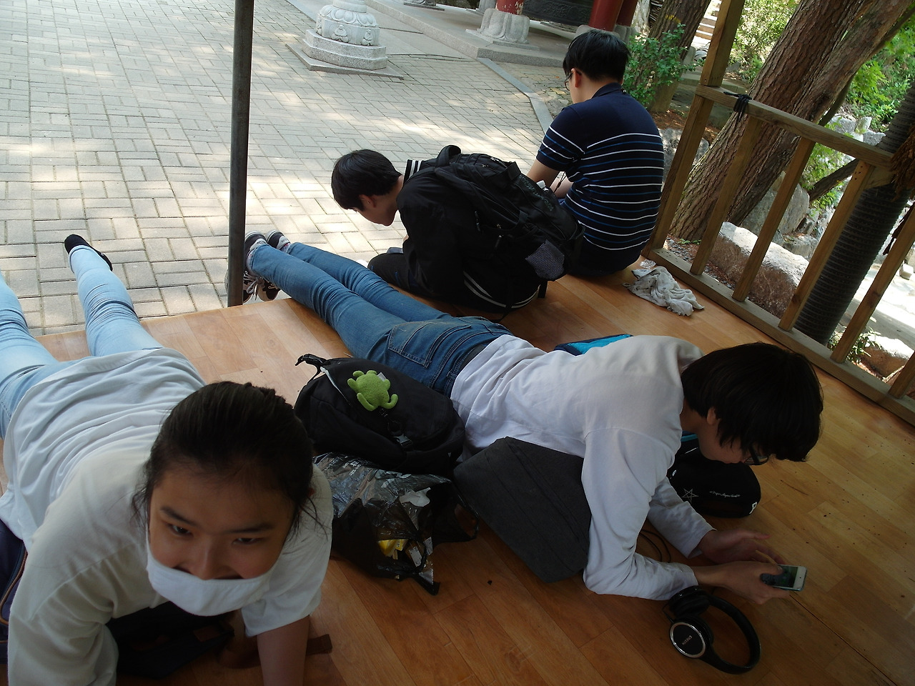 호국사 평상에서 점심을 먹고 모처럼 느긋하게 오후의 한가로움을 즐겼다. 아이들도 저마다 평상에 누워 시원한 바람을 맞으며 하고 싶은 것을 하기 시작한다.