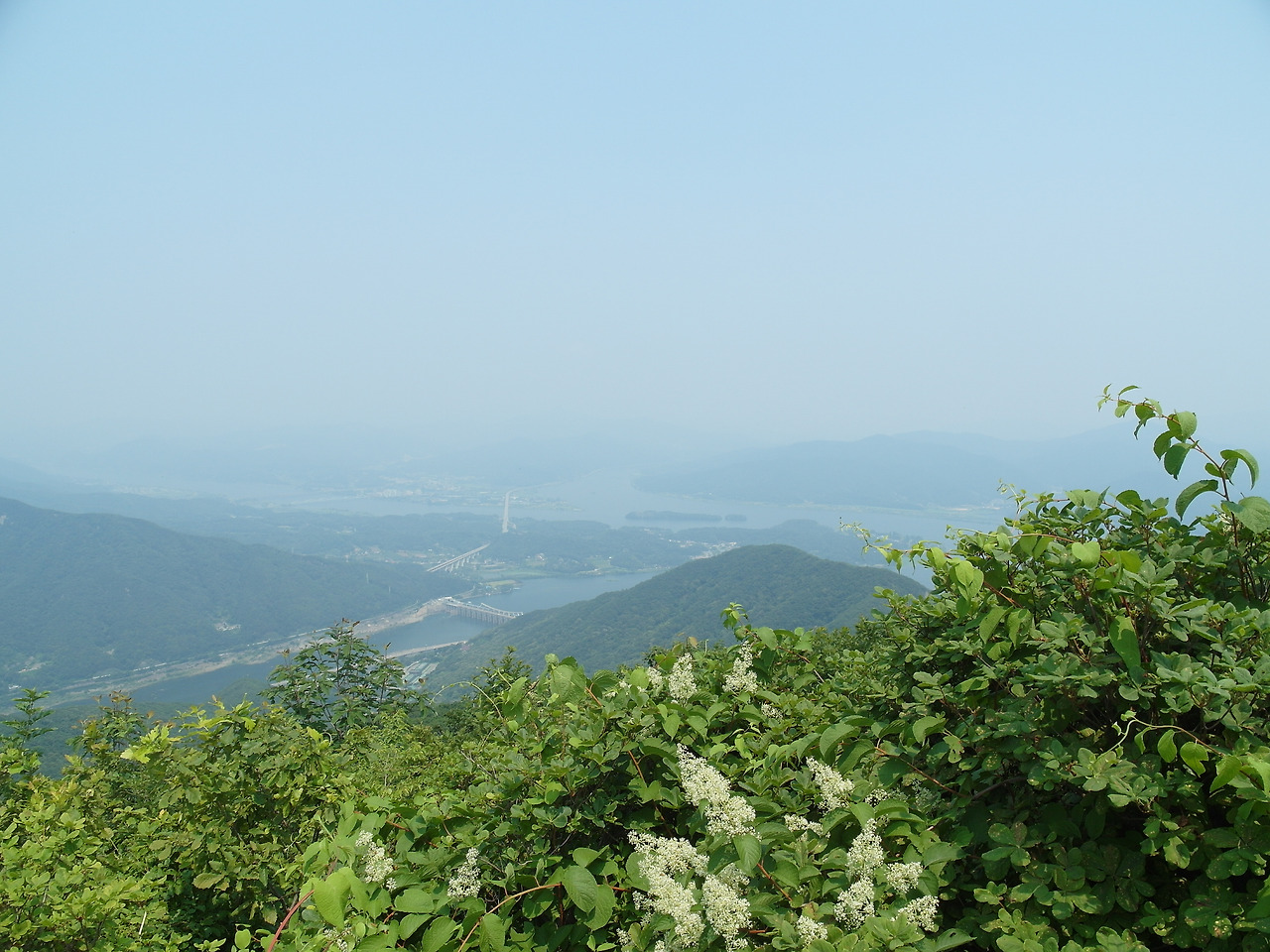 12시 50분에 호국사에서 출발하여 오르기 시작했고 정상에 도착한 시간은 1시 47분이었다. 거의 한 시간동안 걸어서 도착한 것이다. 정상에서 남한강변을 내려다보니, 팔당댐과 두물머리가 보이더라. 안개 같은 게 껴있어서 가시거리가 좋진 않았지만, 힘들게 올라온 만큼 뿌듯했다. 거기서 5분 정도 쉰 다음에 내려오기 시작했다.