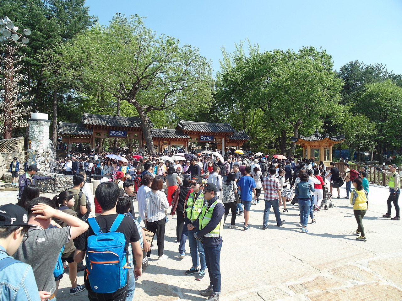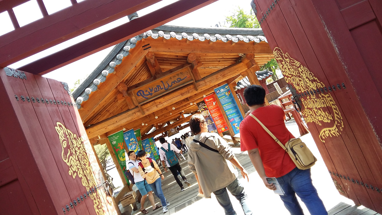 차가 갔다가 올 동안 우린 입구에 설치된 의자에 앉아 사람들을 구경했다. 위에서도 잠시 말했다시피 다양한 국적의 사람들, 다양한 연령대의 사람들이 왔는데, 그들 표정은 한결 같이 다들 밝았다. 하긴 학교에서 수학여행을 왔든, 시간을 내어 놀러왔든 일상에서 벗어나 특별한 하루를 보내는 것이니 그럴 만도 하다. 그걸 보고 있으니, ‘즐거운 여행하는 날 아침에 괜히 부산을 떠느라 일상에 푹 빠져 어쩌면 가장 행복할 수 있는 이 날을 허비하고 있다’는 생각이 들어서 몸은 피곤하지만 마음만은 편히 먹으려고 노력했다.