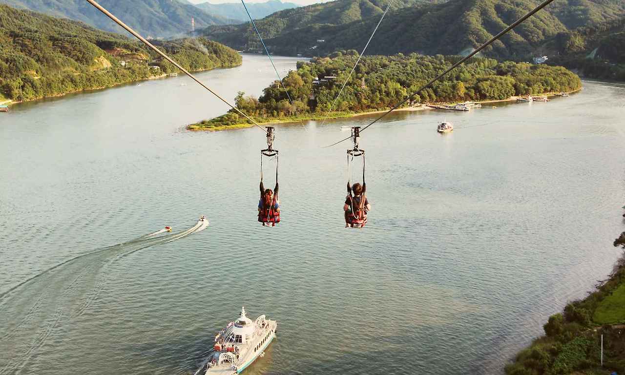 마지막은 짚와이어를 타고 들어가는 방법이 있다. 가격은 1인당 38.000원이어서 결코 저렴하다고는 할 수 없다. 이 가격엔 짚와이어로 들어가는 비용과 입장료, 나올 때 선박료가 모두 포함되어 있다고 한다. 그래도 짚와이어로 스릴 있는 경험을 할 수 있다는 것과 배를 타려는 번잡함 없이 들어갈 수 있다는 장점이 있다. 신청은 인터파크에서 할 수 있으며, 현장에서도 할 수 있다고 한다. 하지만 현장에 사람이 많을 땐 2시간 이상을 기다려야 하는 경우도 있으니, 미리 계획을 짜서 가는 거라면 인터넷으로 미리 티켓을 끊고 그 시간에 맞춰 가는 게 나을 것이다.